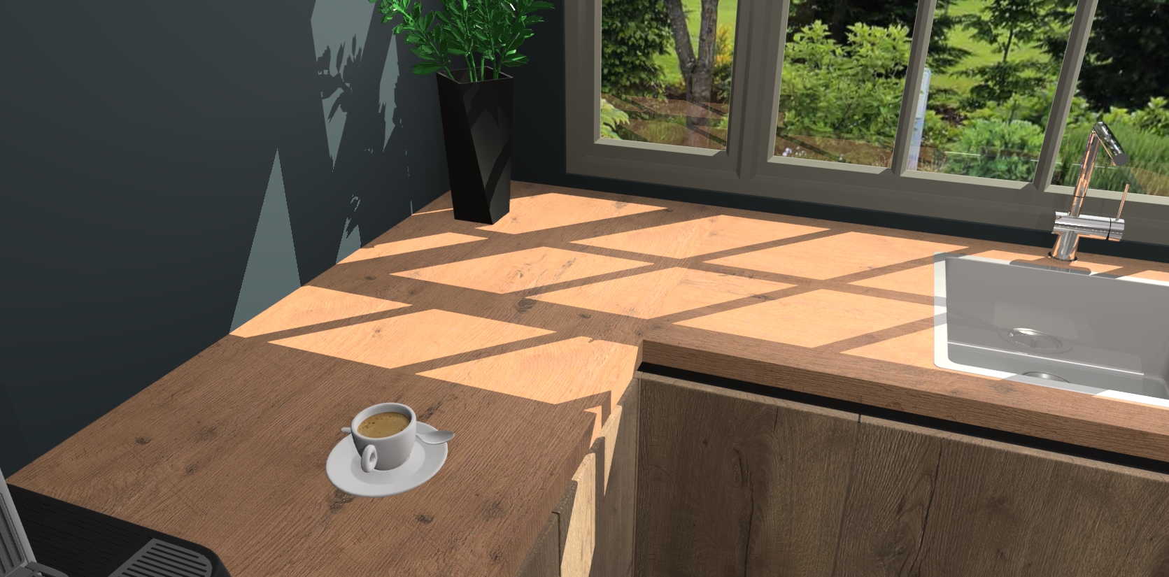 - Bij een hoekwerkblad zijn de hoeken in gevreesd en op maat gemaakt