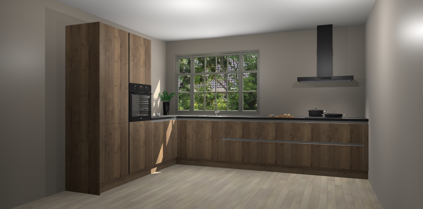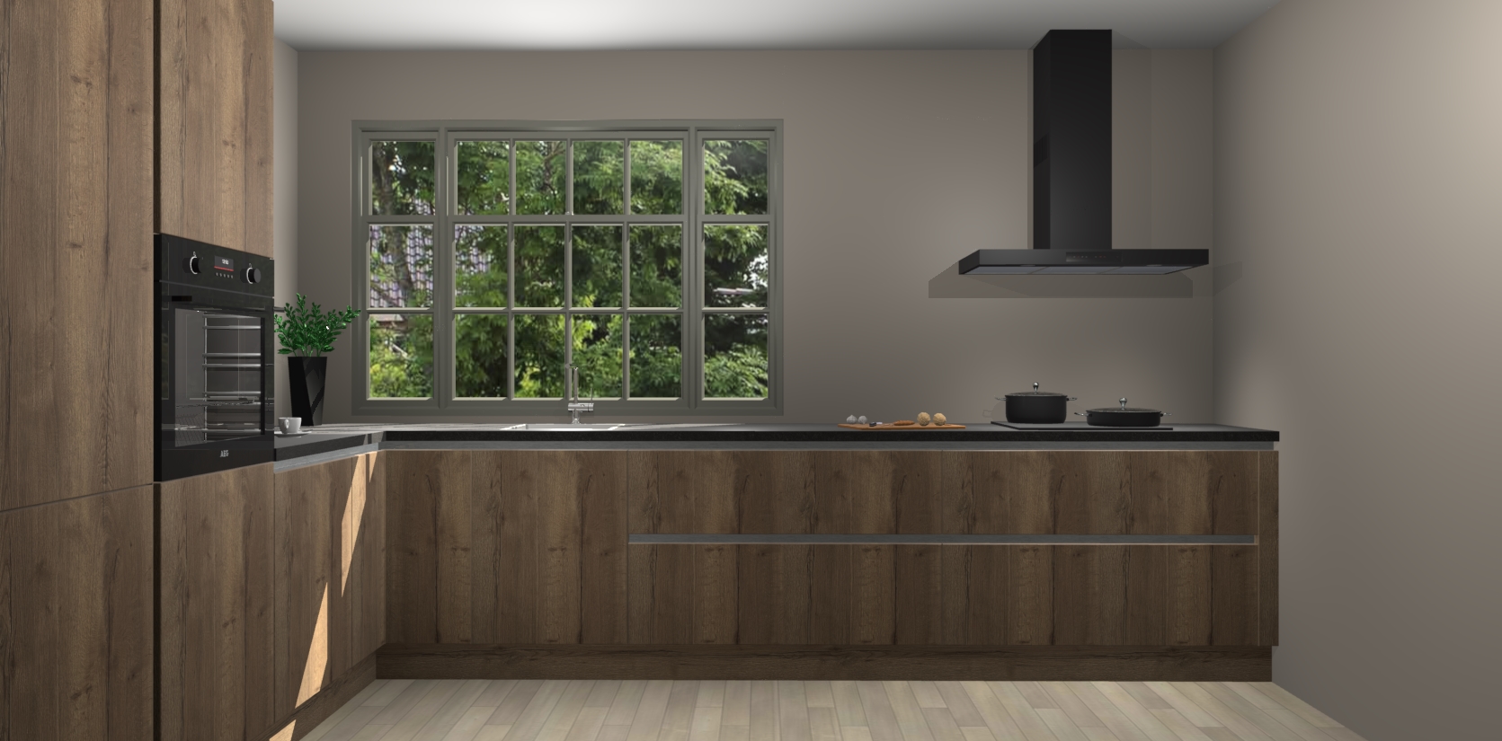 Kom dichtbij de perfecte keuken van uw dromen met de Chocolade Eiken greeploze keuken Malaga. Met een prachtige houtlook en eigentijds ontwerp, straalt deze keuken warmte en sfeer uit. Of u nu liefhebber bent van traditionele of moderne stijlen, er is genoeg ruimte om aan al uw behoeften te voldoen.