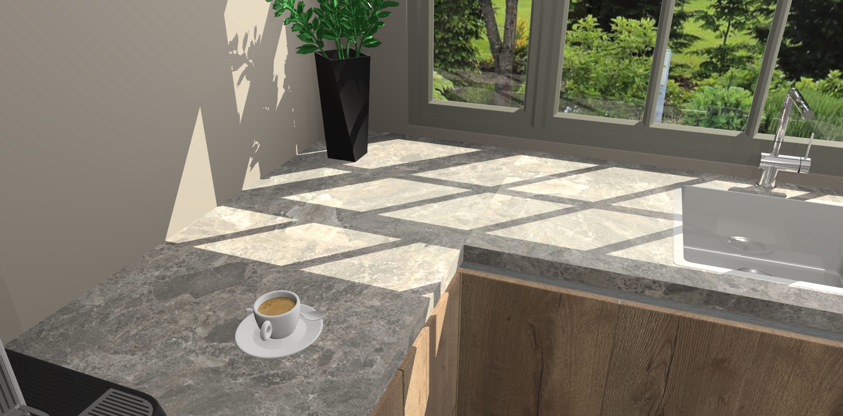 • Bij een hoekwerkblad zijn de hoeken in gevreesd en op maat gemaakt