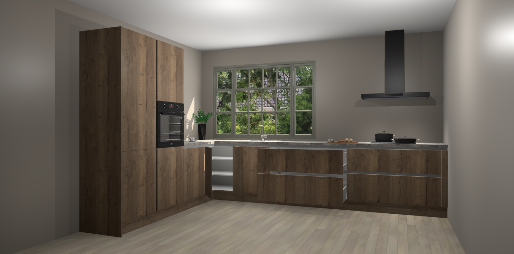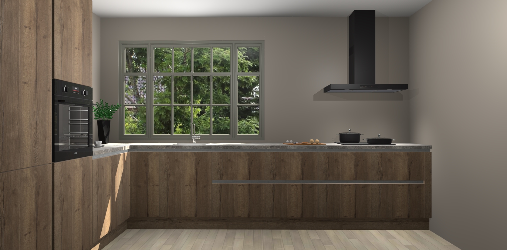 Kom dichtbij de perfecte keuken van uw dromen met de Chocolade Eiken greeploze keuken Malaga. Met een prachtige houtlook en eigentijds ontwerp, straalt deze keuken warmte en sfeer uit. Of u nu liefhebber bent van traditionele of moderne stijlen, er is genoeg ruimte om aan al uw behoeften te voldoen.