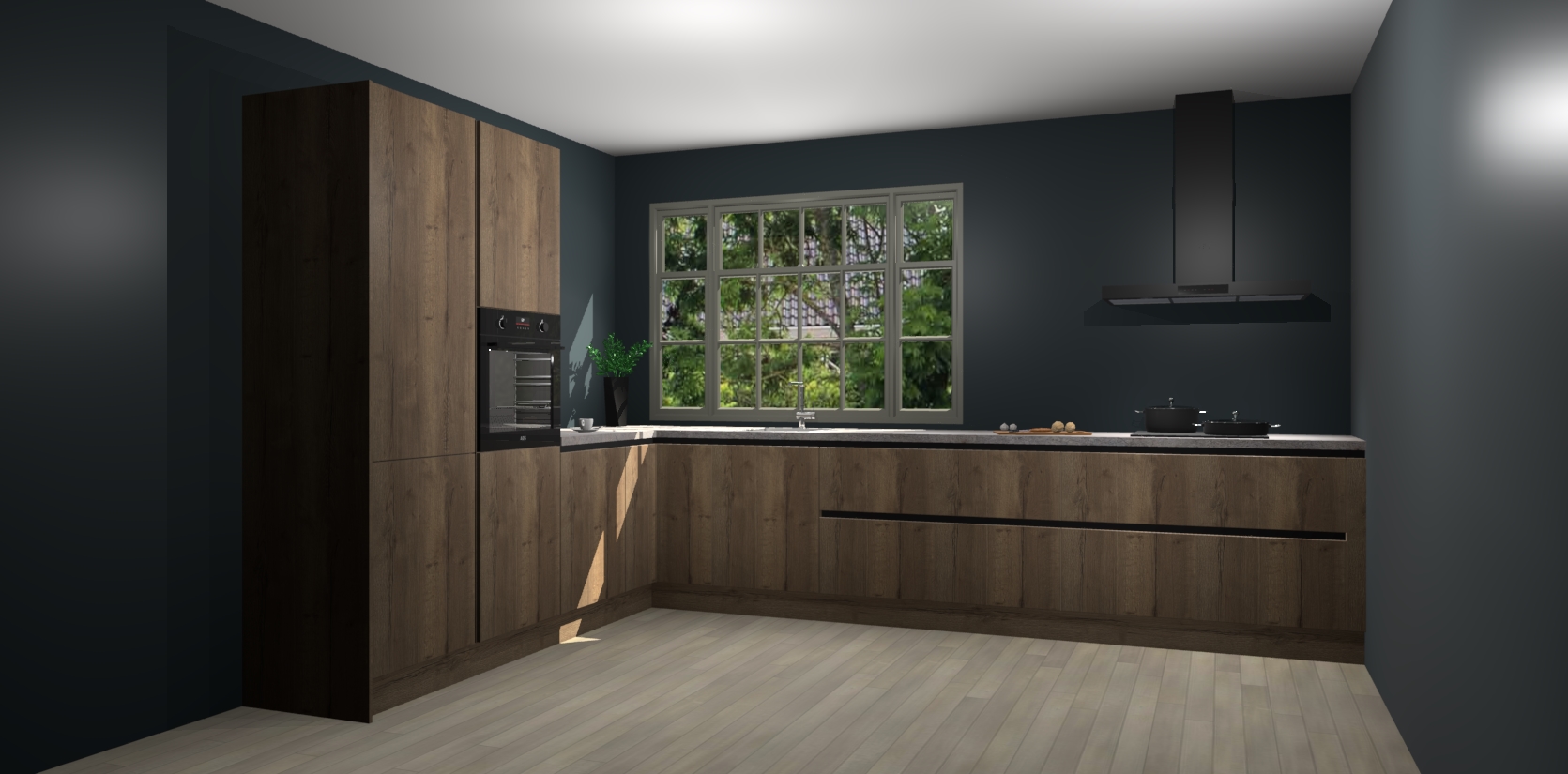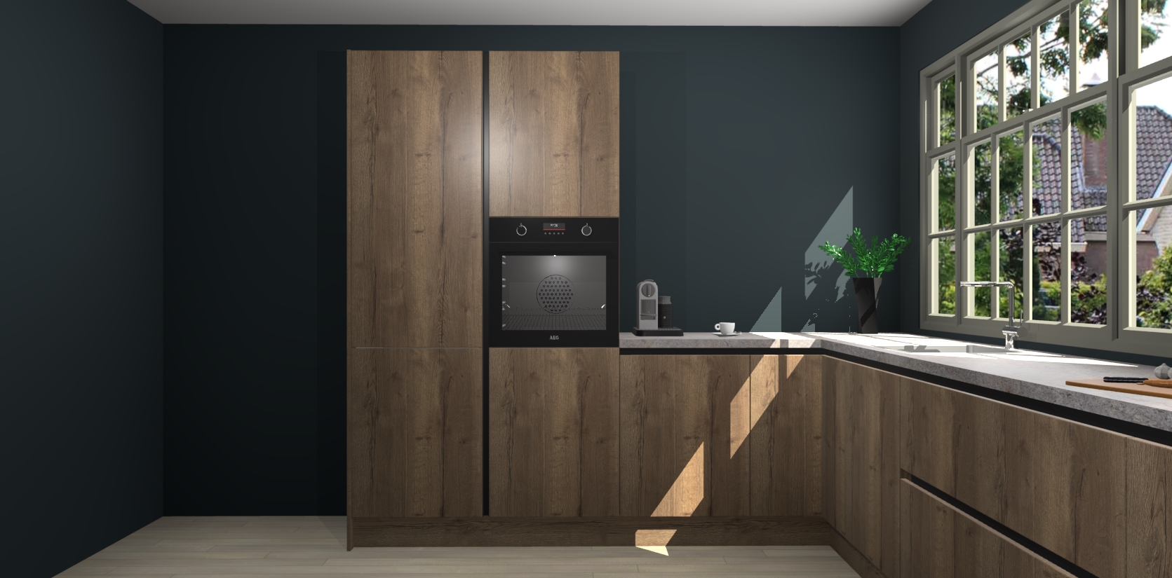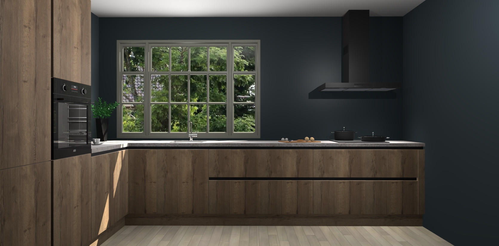 Kom dichtbij de perfecte keuken van uw dromen met de Chocolade Eiken greeploze keuken Malaga. Met een prachtige houtlook en eigentijds ontwerp, straalt deze keuken warmte en sfeer uit. Of u nu liefhebber bent van traditionele of moderne stijlen, er is genoeg ruimte om aan al uw behoeften te voldoen.