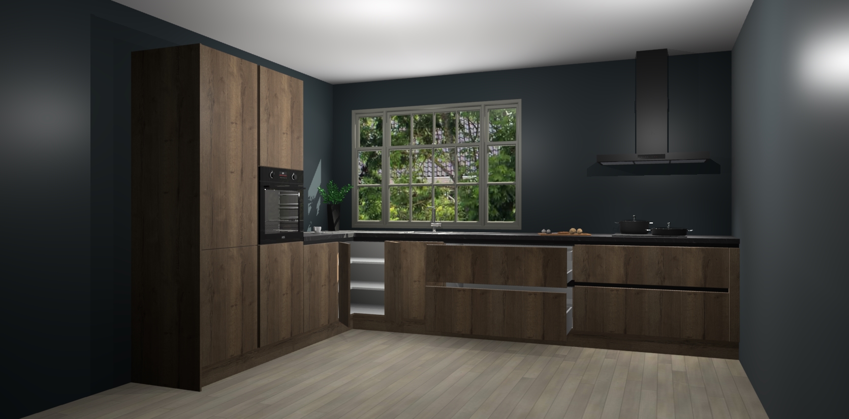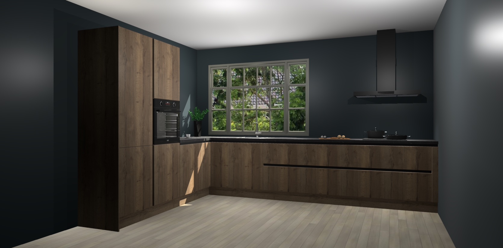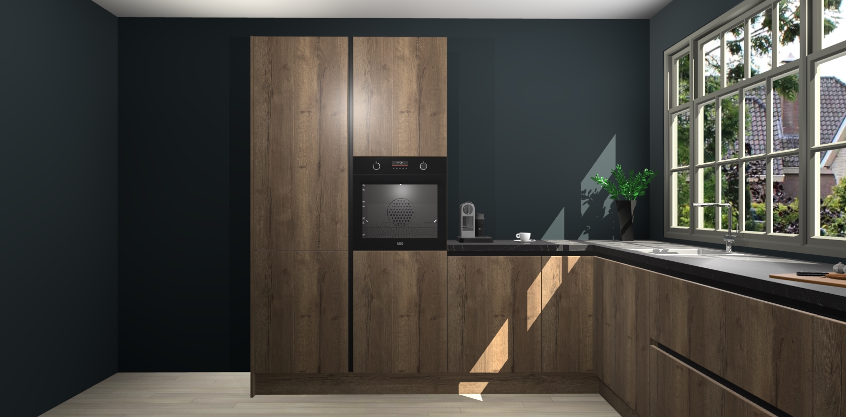 Kom dichtbij de perfecte keuken van uw dromen met de Chocolade Eiken greeploze keuken Malaga. Met een prachtige houtlook en eigentijds ontwerp, straalt deze keuken warmte en sfeer uit. Of u nu liefhebber bent van traditionele of moderne stijlen, er is genoeg ruimte om aan al uw behoeften te voldoen.