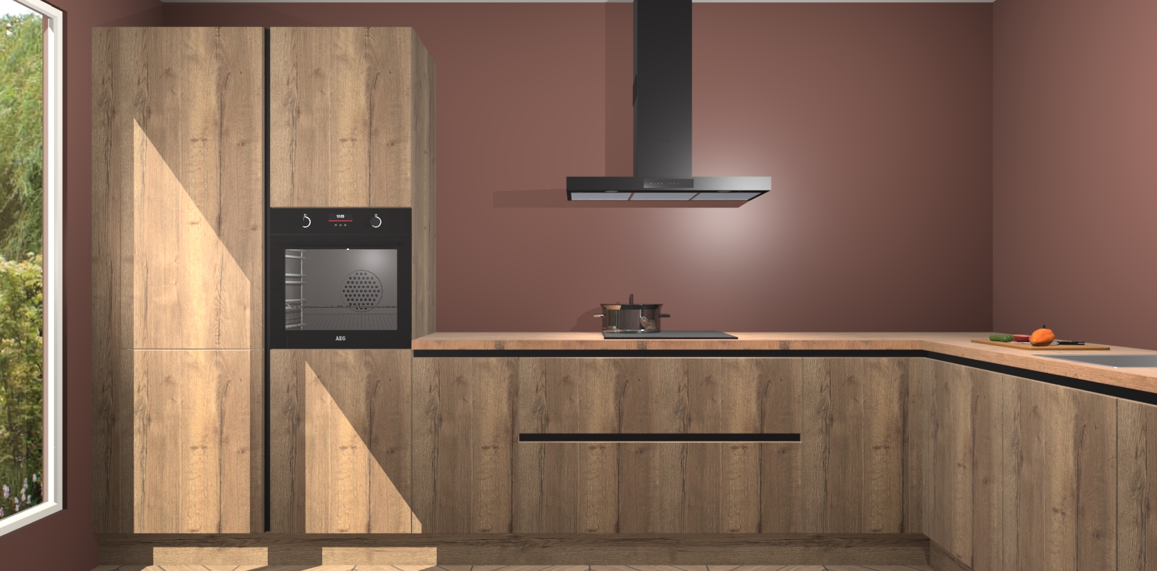Met een modern, tijdloos design en ruime opslagruimte, zult u zich in no-time thuis voelen in uw nieuwe keuken. Uw leven wordt eenvoudiger met de soft-close deuren die voor het ultieme stille comfort zorgen - geen geluid dat u stoort terwijl u kookt. Ook is de keuken voorzien van 5 ingebouwde apparaten: een oven, inductie kookplaat, afzuigkap, vaatwasser en koelkast. Deze kunnen gemakkelijk na bestelling worden bijgewerkt naar AEG - waardoor uw luxe ervaring compleet is.