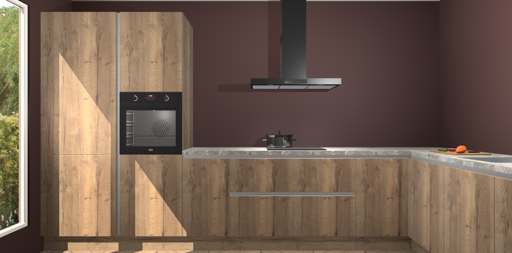 Met een modern, tijdloos design en ruime opslagruimte, zult u zich in no-time thuis voelen in uw nieuwe keuken. Uw leven wordt eenvoudiger met de soft-close deuren die voor het ultieme stille comfort zorgen - geen geluid dat u stoort terwijl u kookt. Ook is de keuken voorzien van 5 ingebouwde apparaten: een oven, inductie kookplaat, afzuigkap, vaatwasser en koelkast. Deze kunnen gemakkelijk na bestelling worden bijgewerkt naar AEG - waardoor uw luxe ervaring compleet is.