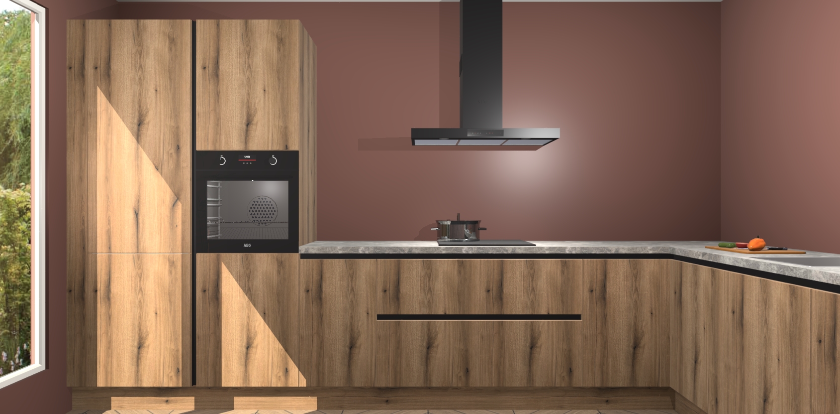 Met een modern, tijdloos design en ruime opslagruimte, zult u zich in no-time thuis voelen in uw nieuwe keuken. Uw leven wordt eenvoudiger met de soft-close deuren die voor het ultieme stille comfort zorgen - geen geluid dat u stoort terwijl u kookt. Ook is de keuken voorzien van 5 ingebouwde apparaten: een oven, inductie kookplaat, afzuigkap, vaatwasser en koelkast. Deze kunnen gemakkelijk na bestelling worden bijgewerkt naar AEG - waardoor uw luxe ervaring compleet is.