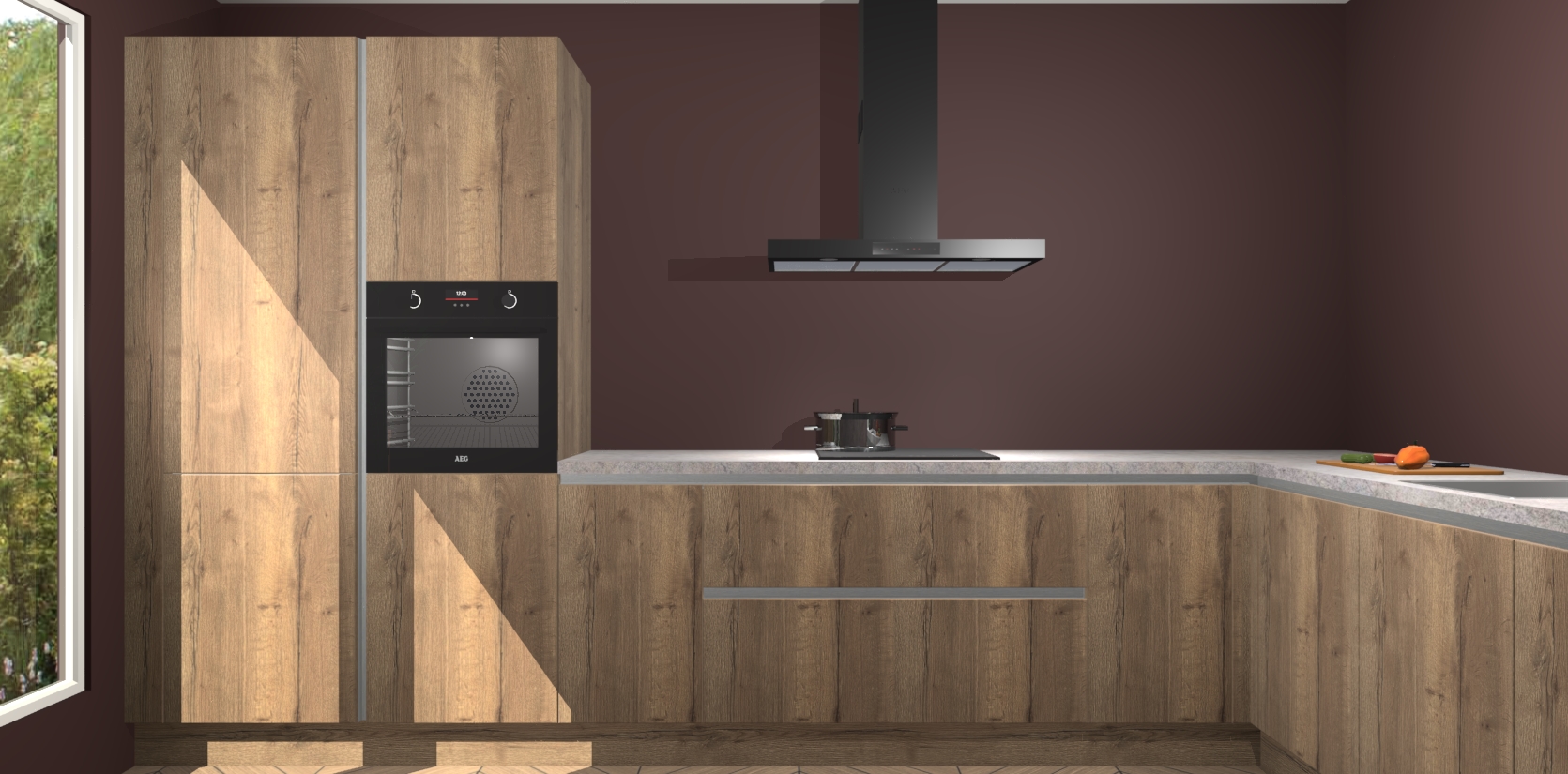 Met een modern, tijdloos design en ruime opslagruimte, zult u zich in no-time thuis voelen in uw nieuwe keuken. Uw leven wordt eenvoudiger met de soft-close deuren die voor het ultieme stille comfort zorgen - geen geluid dat u stoort terwijl u kookt. Ook is de keuken voorzien van 5 ingebouwde apparaten: een oven, inductie kookplaat, afzuigkap, vaatwasser en koelkast. Deze kunnen gemakkelijk na bestelling worden bijgewerkt naar AEG - waardoor uw luxe ervaring compleet is.