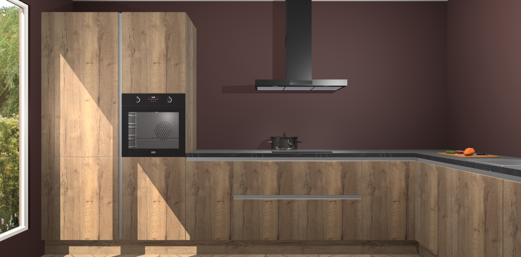 Met een modern, tijdloos design en ruime opslagruimte, zult u zich in no-time thuis voelen in uw nieuwe keuken. Uw leven wordt eenvoudiger met de soft-close deuren die voor het ultieme stille comfort zorgen - geen geluid dat u stoort terwijl u kookt. Ook is de keuken voorzien van 5 ingebouwde apparaten: een oven, inductie kookplaat, afzuigkap, vaatwasser en koelkast. Deze kunnen gemakkelijk na bestelling worden bijgewerkt naar AEG - waardoor uw luxe ervaring compleet is.