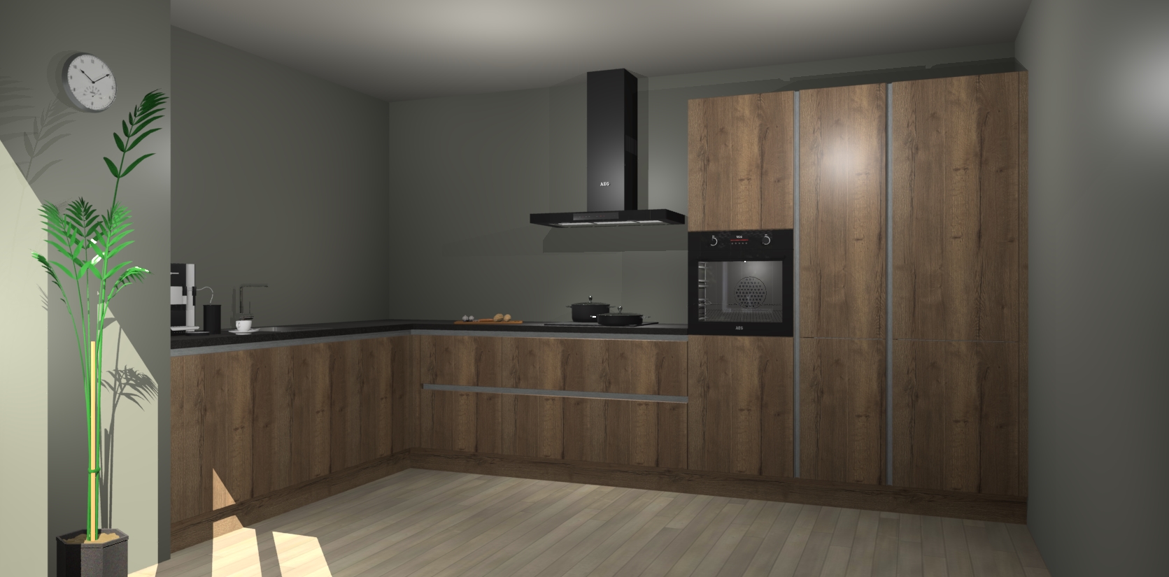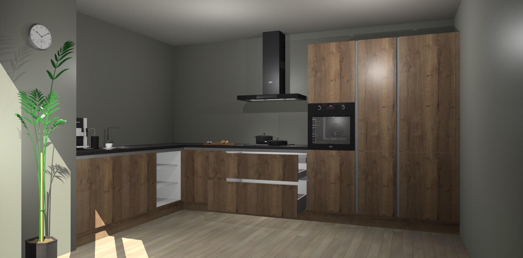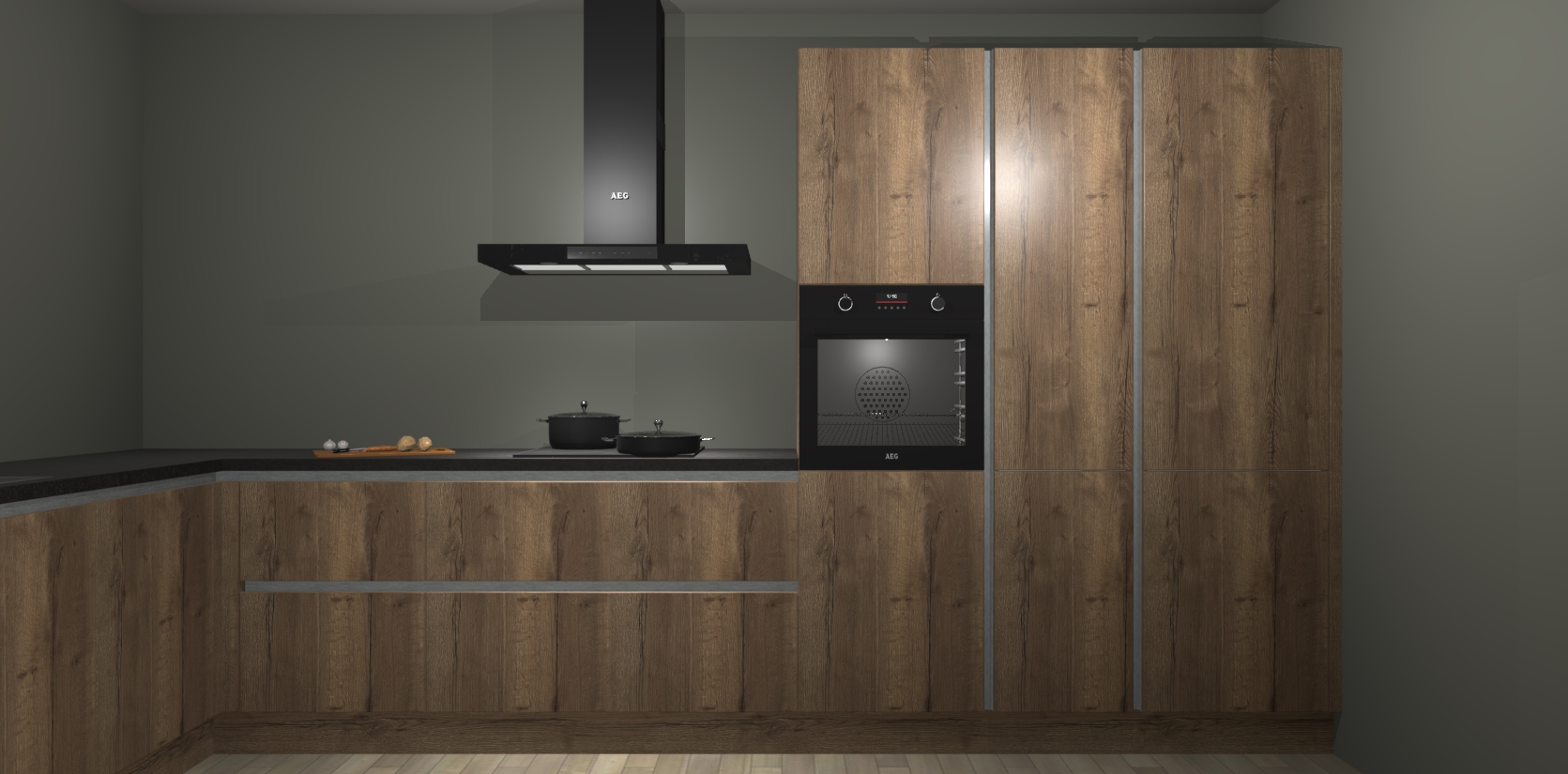 Welkom bij de chocolade eiken greeploze keuken Nuuk. Deze prachtige keuken zal de komende jaren het middelpunt van de belangstelling in uw huis zijn. Uitgerust met vijf inbouwapparaten komt u nooit kookgereedschap tekort.