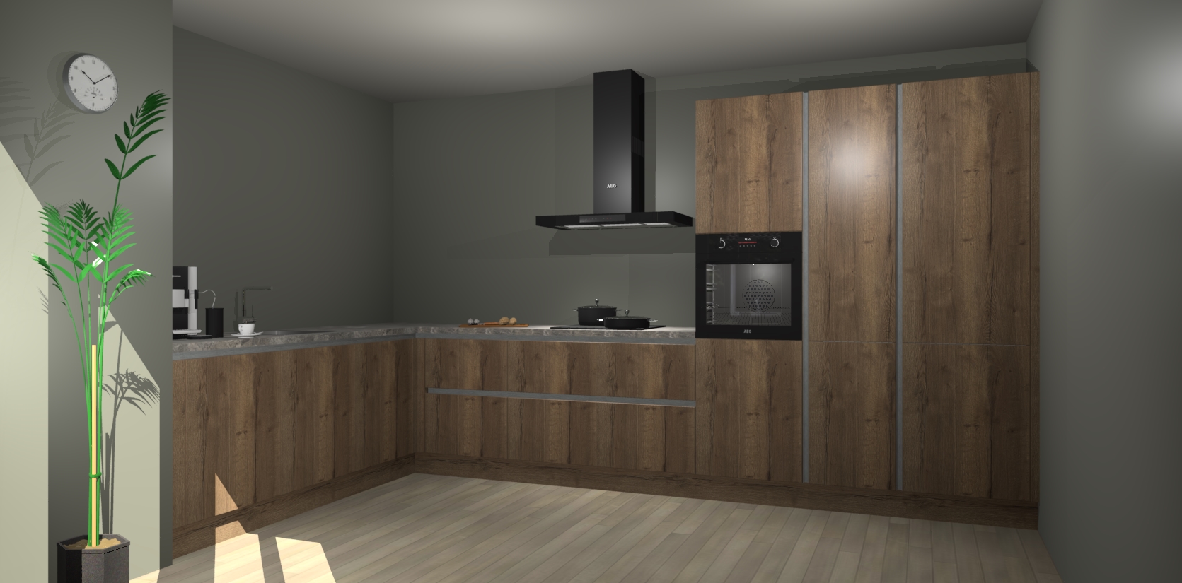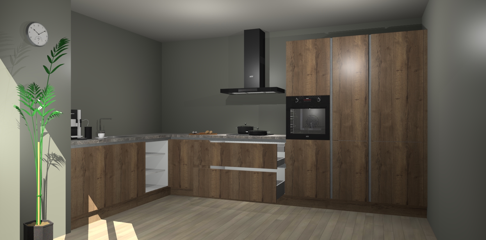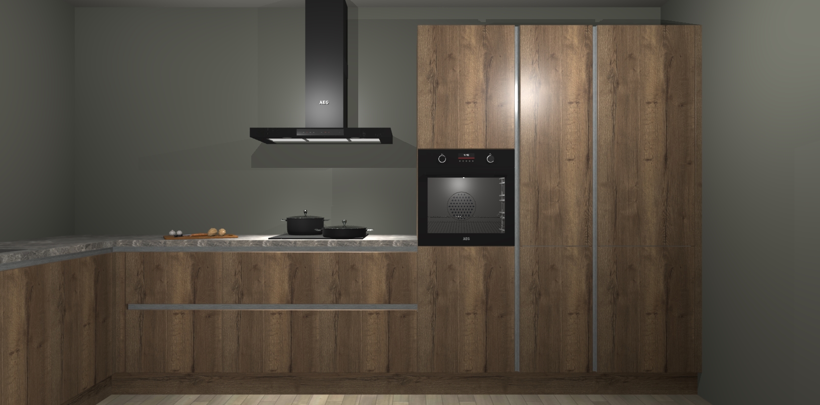 Welkom bij de chocolade eiken greeploze keuken Nuuk. Deze prachtige keuken zal de komende jaren het middelpunt van de belangstelling in uw huis zijn. Uitgerust met vijf inbouwapparaten komt u nooit kookgereedschap tekort.