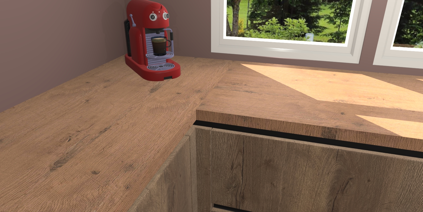 - Bij een hoekwerkblad zijn de hoeken in gevreesd en op maat gemaakt