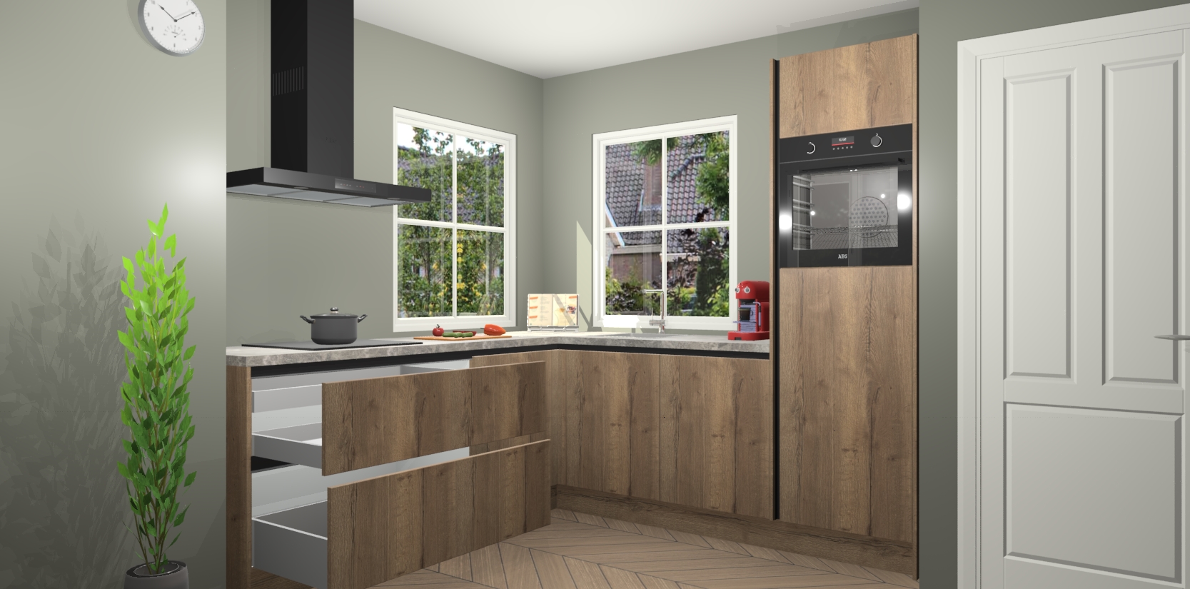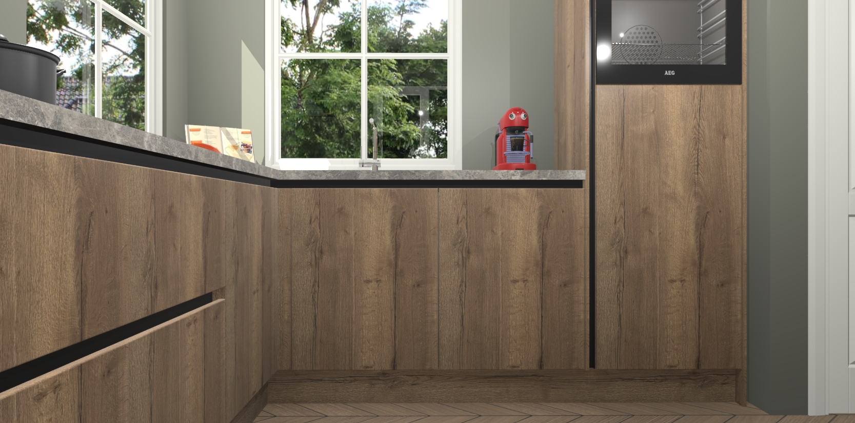 De Chocolade Eiken greeploze keuken Pai bevat vijf essentiële inbouwapparaten - een oven, inductiekookplaat, afzuigkap, vaatwasser en koelkast - zodat u er na levering meteen in kunt. Voor de slimme kopers die weten dat apparaten vaak het verschil kunnen maken tussen functioneel en luxueus, bieden we eenvoudige upgradeopties naar AEG, van oven naar combimagnetron na bestelling of naar een kookplaat met geïntrigeerde afzuiging. En met onze vaste lage prijs en snelle levering binnen zeven weken vanaf de orderbevestiging hoeft u zich geen zorgen te maken over verborgen kosten of lange levertijden die uw droomkeuken kunnen vertragen.