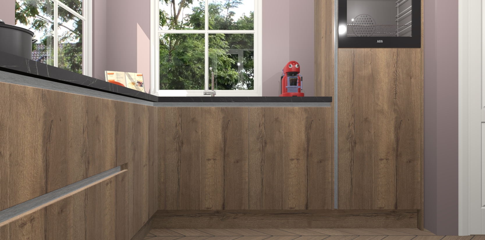 De Chocolade Eiken greeploze keuken Pai bevat vijf essentiële inbouwapparaten - een oven, inductiekookplaat, afzuigkap, vaatwasser en koelkast - zodat u er na levering meteen in kunt. Voor de slimme kopers die weten dat apparaten vaak het verschil kunnen maken tussen functioneel en luxueus, bieden we eenvoudige upgradeopties naar AEG, van oven naar combimagnetron na bestelling of naar een kookplaat met geïntrigeerde afzuiging. En met onze vaste lage prijs en snelle levering binnen zeven weken vanaf de orderbevestiging hoeft u zich geen zorgen te maken over verborgen kosten of lange levertijden die uw droomkeuken kunnen vertragen.