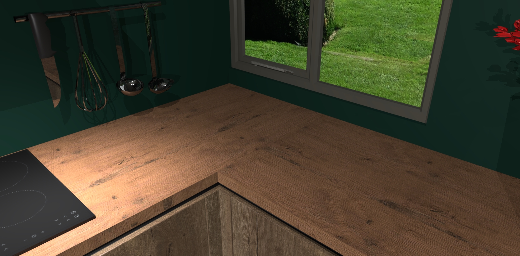 - Bij een hoekwerkblad zijn de hoeken in gevreesd en op maat gemaakt