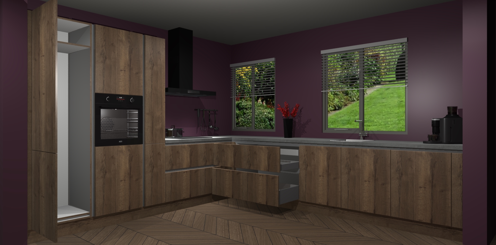 Welkom bij de Chocolade Eiken keuken Palermo. Deze prachtige keuken zal de komende jaren het middelpunt van de belangstelling in uw huis zijn. Uitgerust met vijf inbouwapparaten komt u nooit kookgereedschap tekort. Bovendien geeft de warme houtlook elke ruimte een uitnodigende en tijdloze uitstraling.