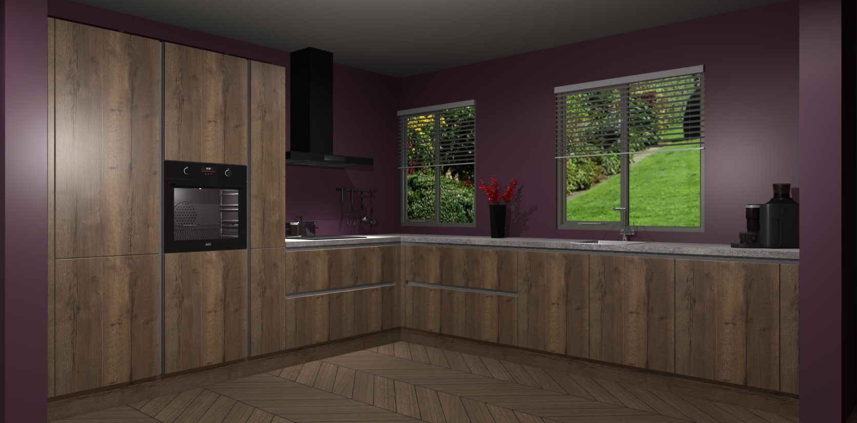 Welkom bij de Chocolade Eiken keuken Palermo. Deze prachtige keuken zal de komende jaren het middelpunt van de belangstelling in uw huis zijn. Uitgerust met vijf inbouwapparaten komt u nooit kookgereedschap tekort. Bovendien geeft de warme houtlook elke ruimte een uitnodigende en tijdloze uitstraling.