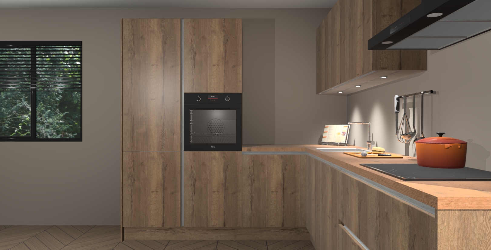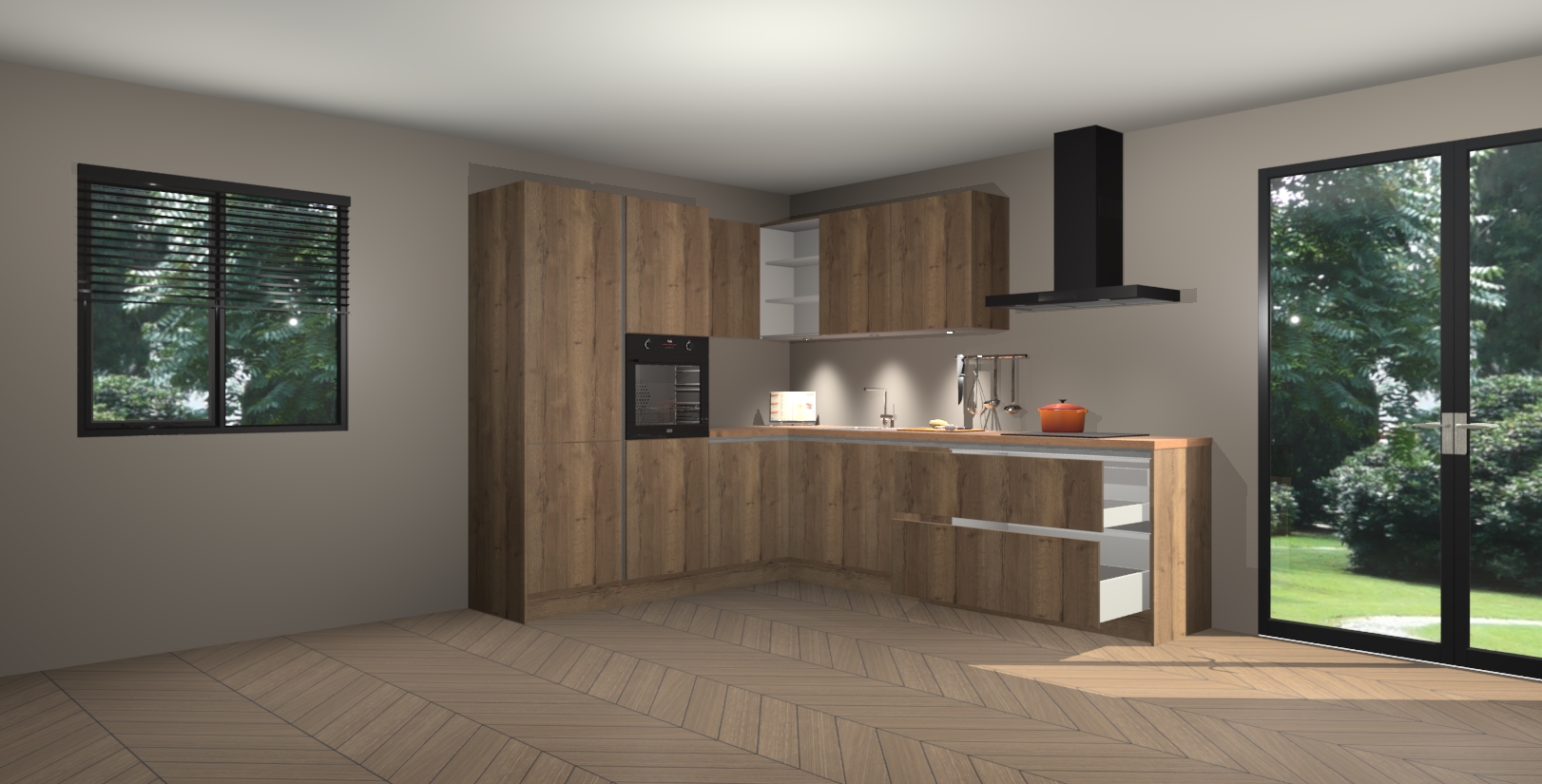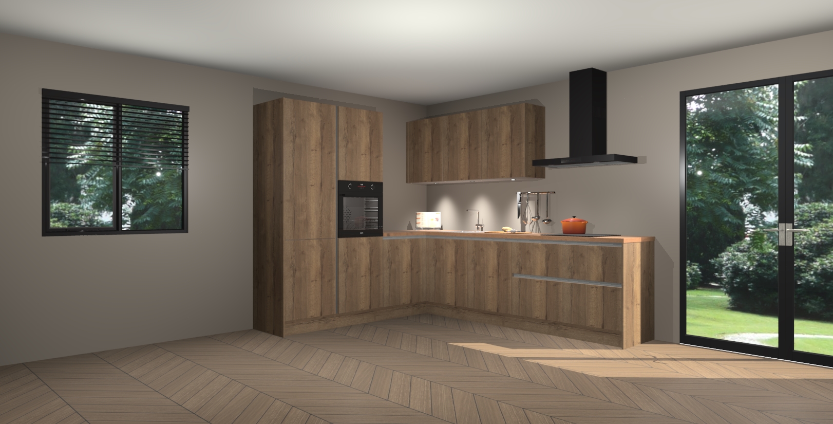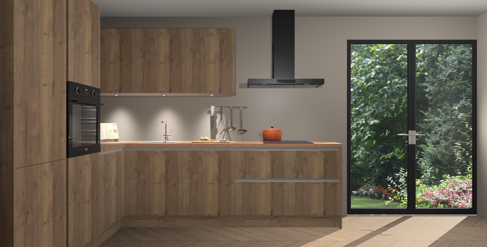 Maak kennis met de chocolade eiken greeploze keuken Parla - de perfecte aanvulling voor uw moderne keuken! Ervaar tijdloos design, elegantie en een chique uitstraling met onze zwarte handgrepen, soft-close deuren en veel opbergruimte. Dit alles wordt aangeboden tegen een vaste lage prijs voor ongeëvenaarde Duitse keukenkwaliteit!