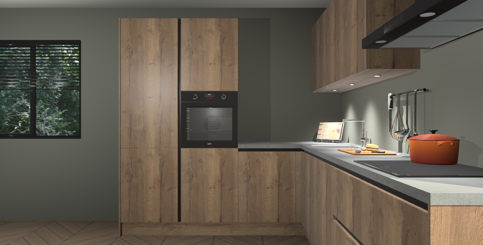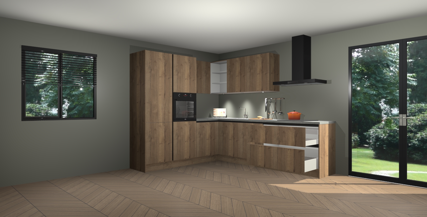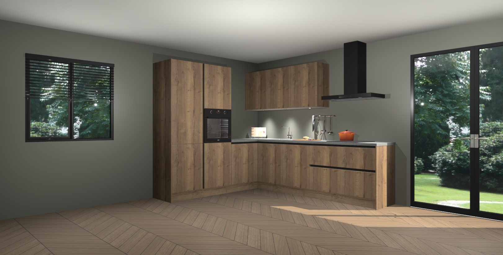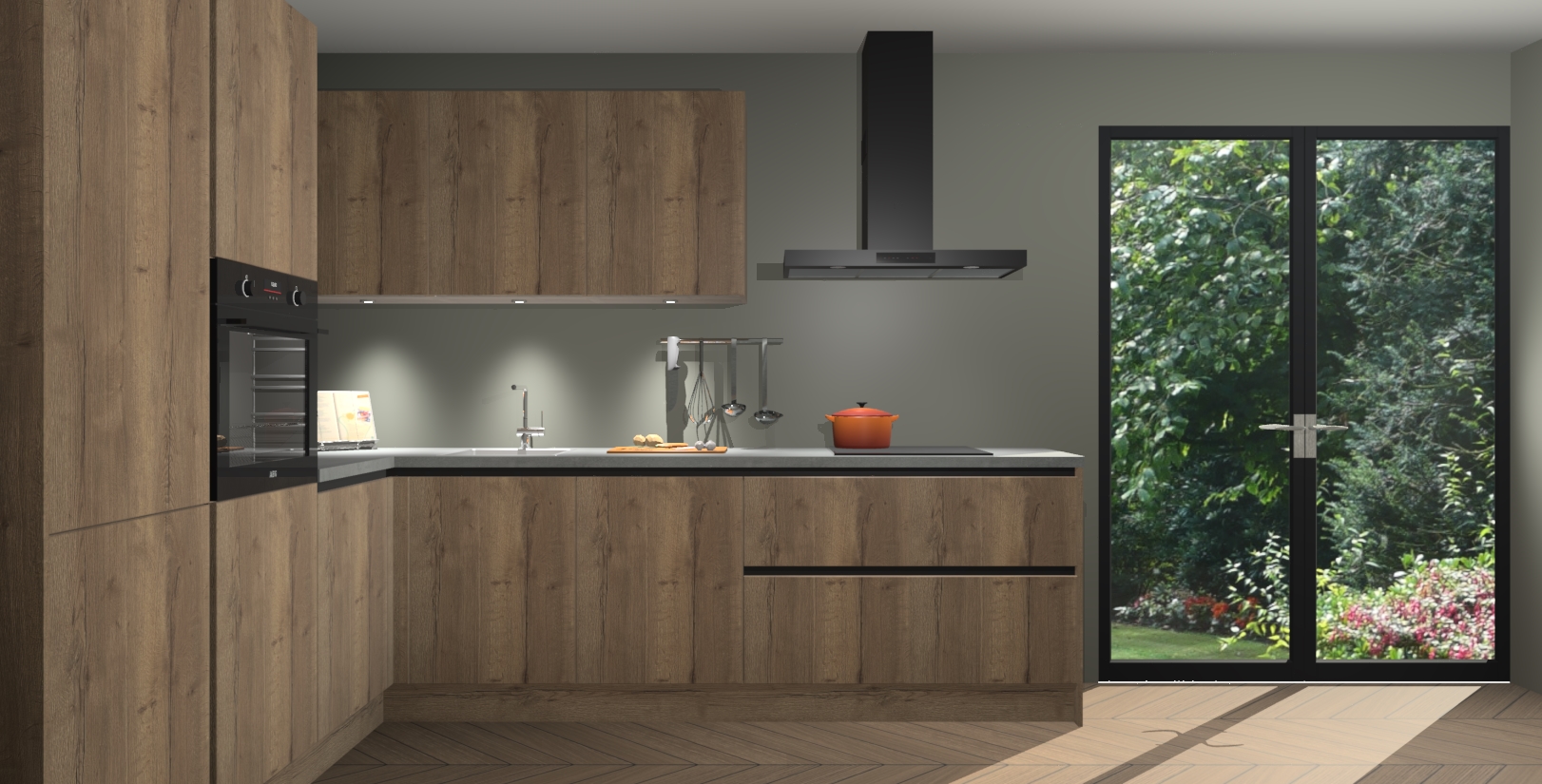 Maak kennis met de chocolade eiken greeploze keuken Parla - de perfecte aanvulling voor uw moderne keuken! Ervaar tijdloos design, elegantie en een chique uitstraling met onze zwarte handgrepen, soft-close deuren en veel opbergruimte. Dit alles wordt aangeboden tegen een vaste lage prijs voor ongeëvenaarde Duitse keukenkwaliteit!