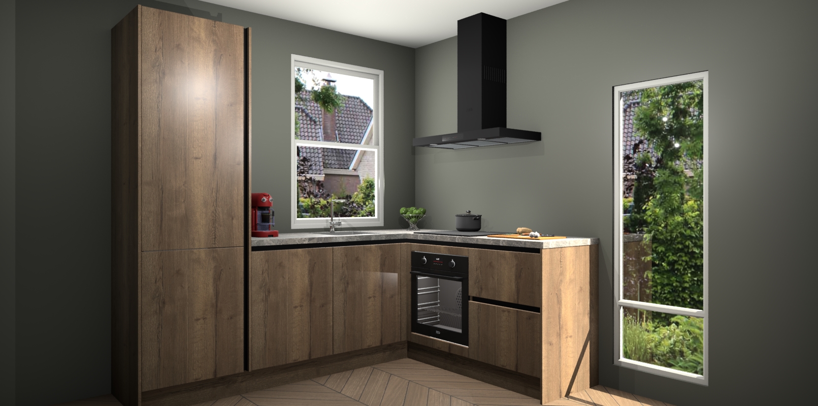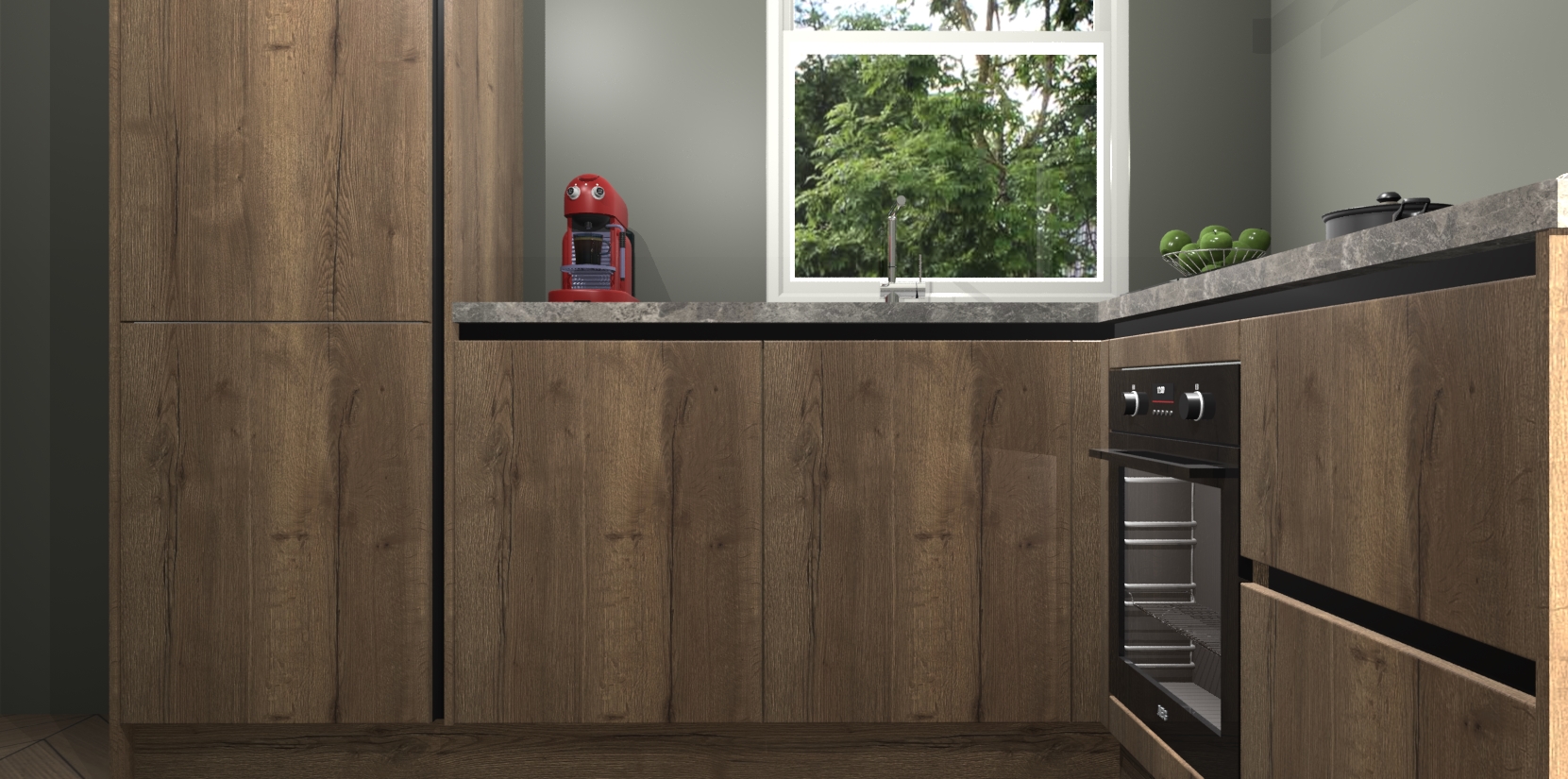 De prachtige Chocolade Eiken greeploze keuken Phuket is de perfecte keuze als u op zoek bent naar een moderne hoekkeuken met alle luxe en comfort die u kunt verwachten! De uitstraling in het houtlook-design draagt bij aan de warme sfeer die u nu al voelt wanneer u er naar kijkt. Heeft u genoeg van ouderwetse keukens? Probeer dan direct deze moderne, mooie hoekkeukens en laat iedereen verbluft achter!