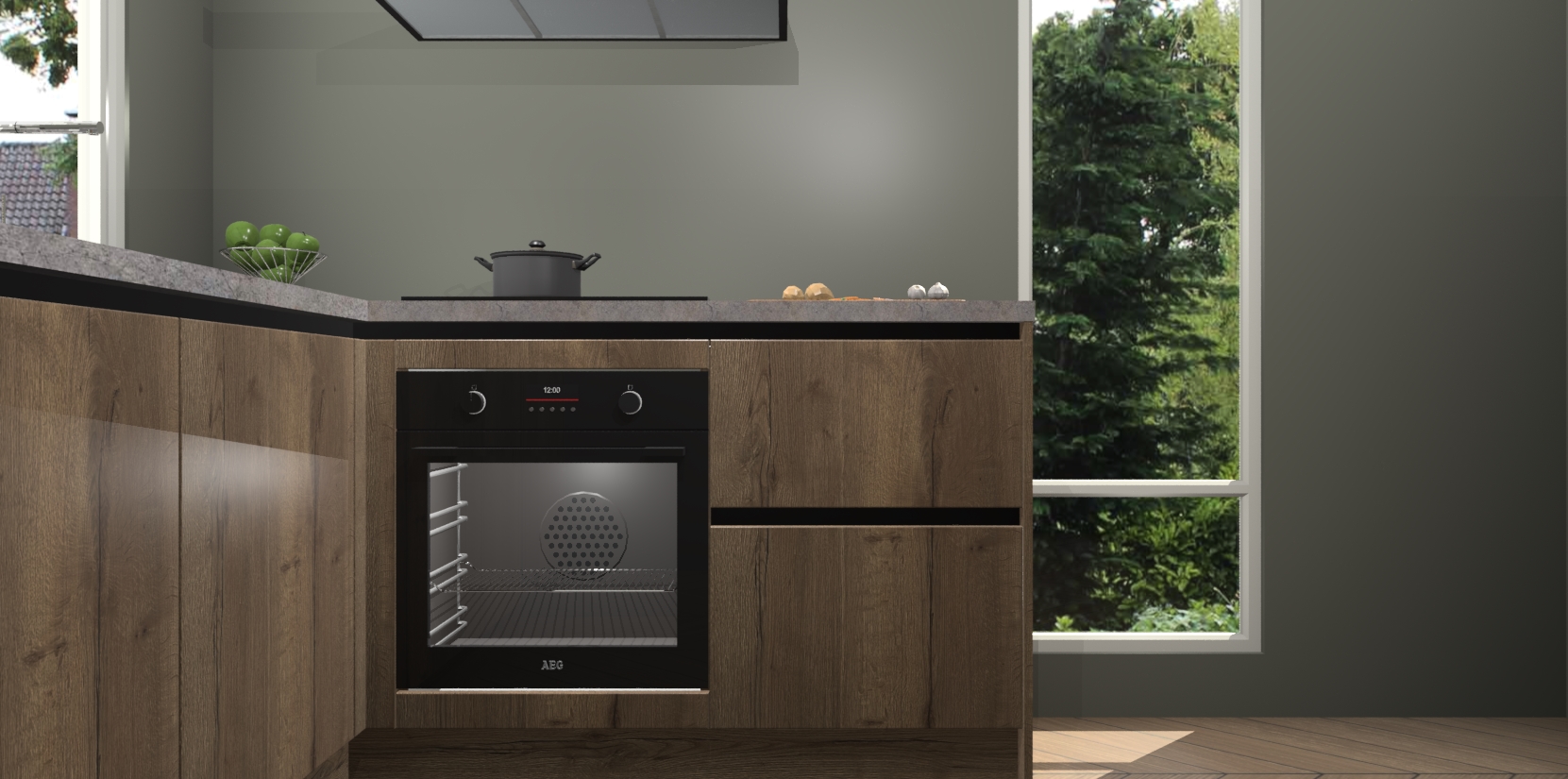 De Chocolade Eiken greeploze keuken Phuket heeft alles wat u maar kunt wensen. Niet alleen zijn er softclose deuren, maar ook 5 ingebouwde apparaten: een oven, inductiekookplaat, afzuigkap, vaatwasser en koelkast - waarbij u later gemakkelijk naar het AEG merk, van inductiekookplaat naar kookplaat met geïntegreerde afzuiging of van oven naar combimagnetron kunt upgraden. Dat alles tegen een vast laag tarief! Bovendien geeft de Chocolade Eiken greeploze keuken Phuket supersnelle levering van 7 weken. Echt iets voor u als u er niet op wilt wachten om het resultaat te zien in eigen keuken!