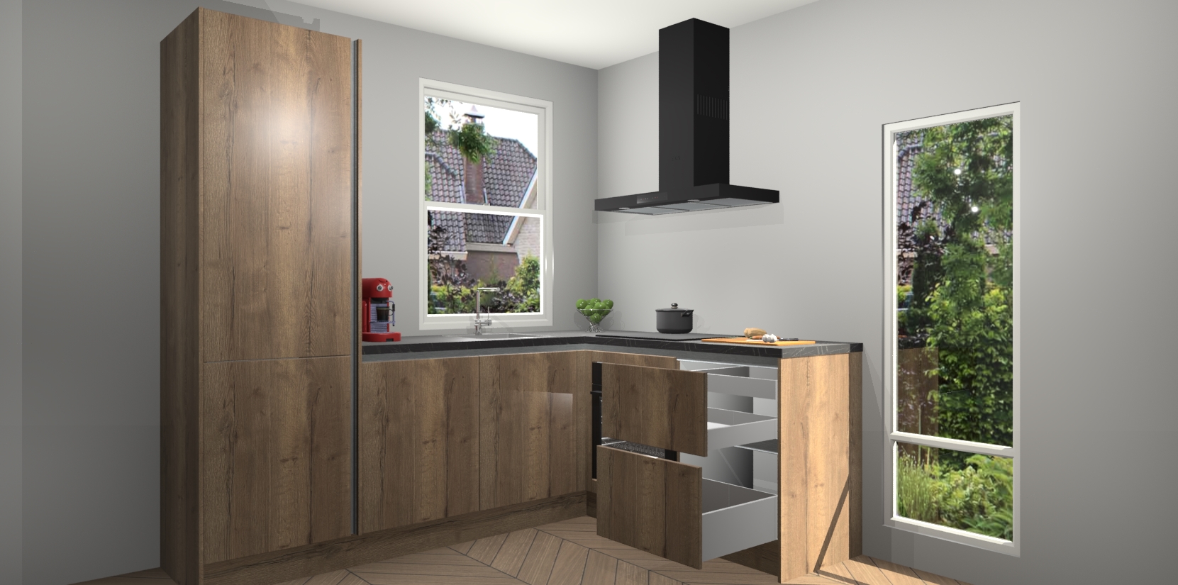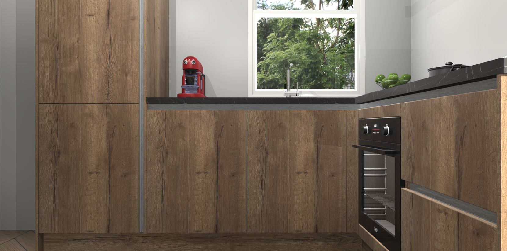 De prachtige Chocolade Eiken greeploze keuken Phuket is de perfecte keuze als u op zoek bent naar een moderne hoekkeuken met alle luxe en comfort die u kunt verwachten! De uitstraling in het houtlook-design draagt bij aan de warme sfeer die u nu al voelt wanneer u er naar kijkt. Heeft u genoeg van ouderwetse keukens? Probeer dan direct deze moderne, mooie hoekkeukens en laat iedereen verbluft achter!