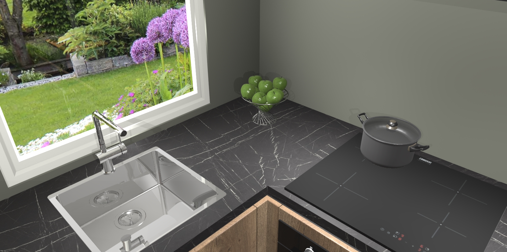 - Bij een hoekwerkblad zijn de hoeken in gevreesd en op maat gemaakt