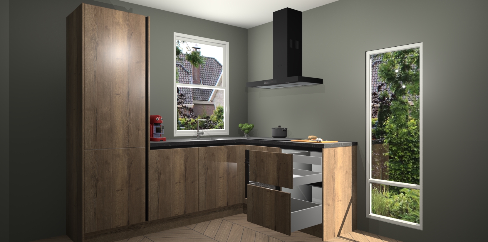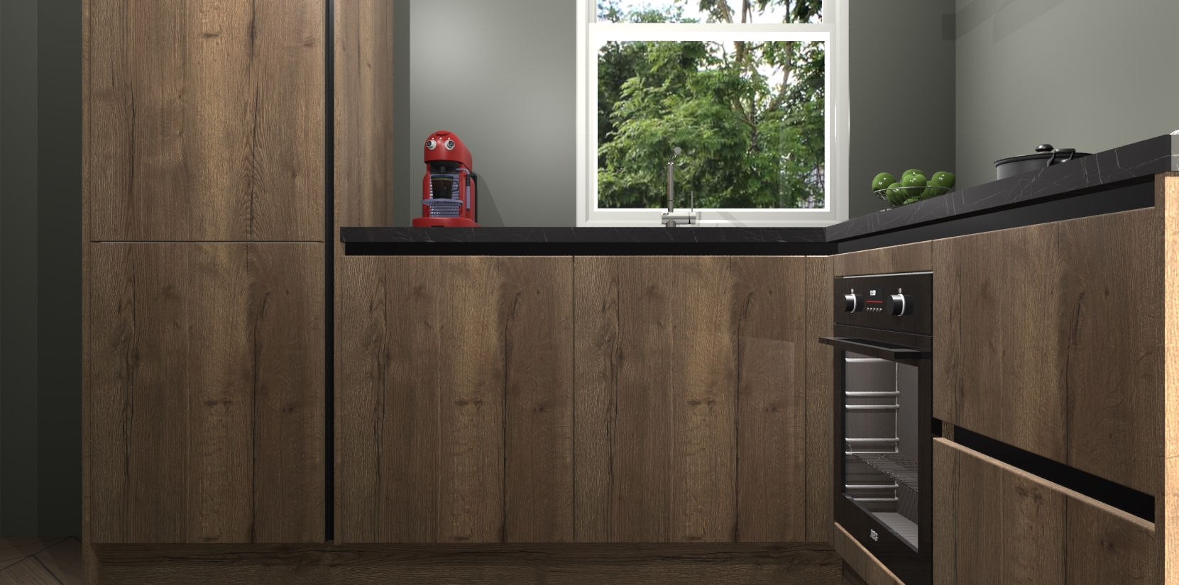 De prachtige Chocolade Eiken greeploze keuken Phuket is de perfecte keuze als u op zoek bent naar een moderne hoekkeuken met alle luxe en comfort die u kunt verwachten! De uitstraling in het houtlook-design draagt bij aan de warme sfeer die u nu al voelt wanneer u er naar kijkt. Heeft u genoeg van ouderwetse keukens? Probeer dan direct deze moderne, mooie hoekkeukens en laat iedereen verbluft achter!