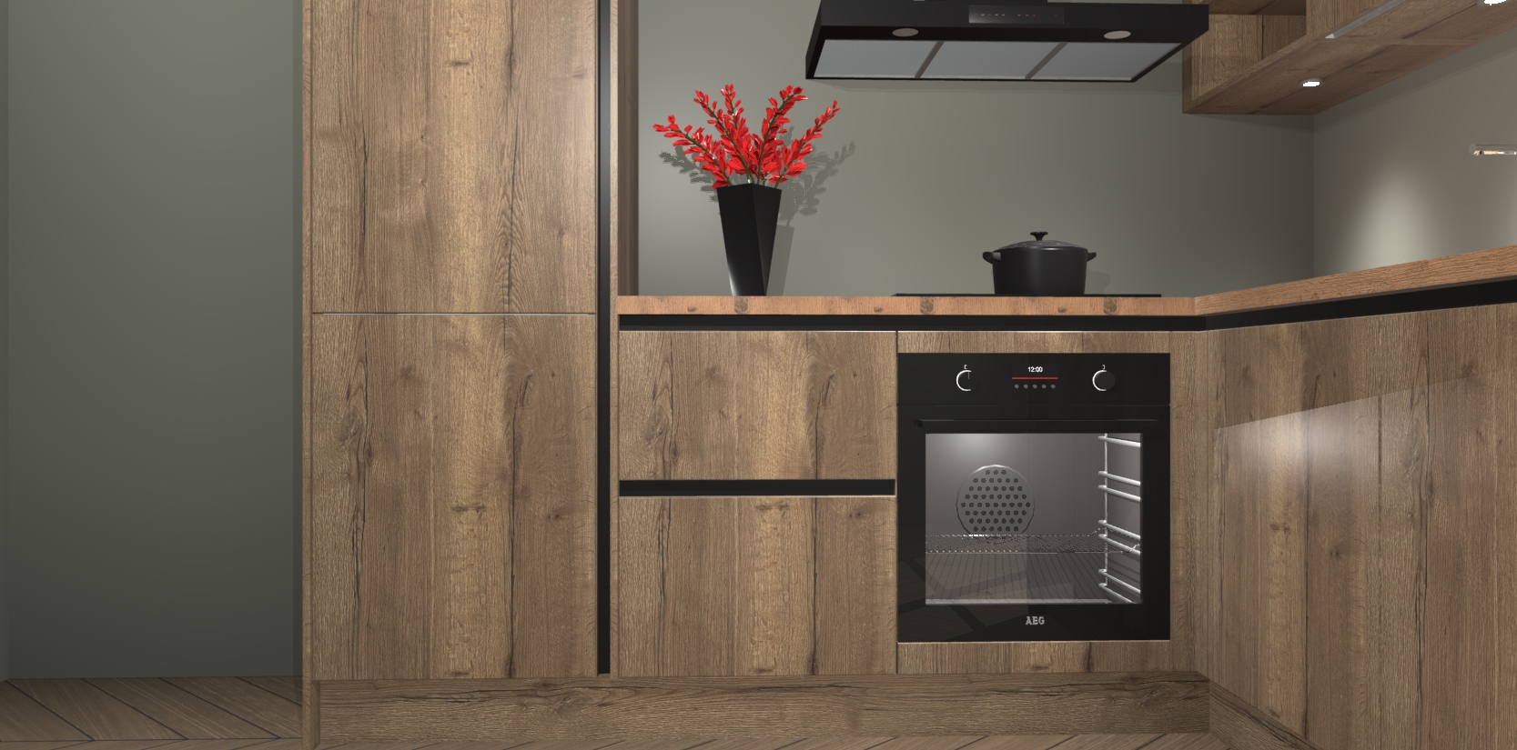 Wauw, dit is de Chocolade Eiken greeploze keuken Pilsen! U kunt gerust zeggen dat u elegantie combineert met functionaliteit met deze keuken. Met een modern en chique ontwerp is de keuken precies wat u nodig heeft om uw ruimte te verfraaien. De binnenzijde van de kasten is in dezelfde donkere kleur als de buitenzijde voor een uniforme look, compleet met softclose-kasten die stil sluiten.