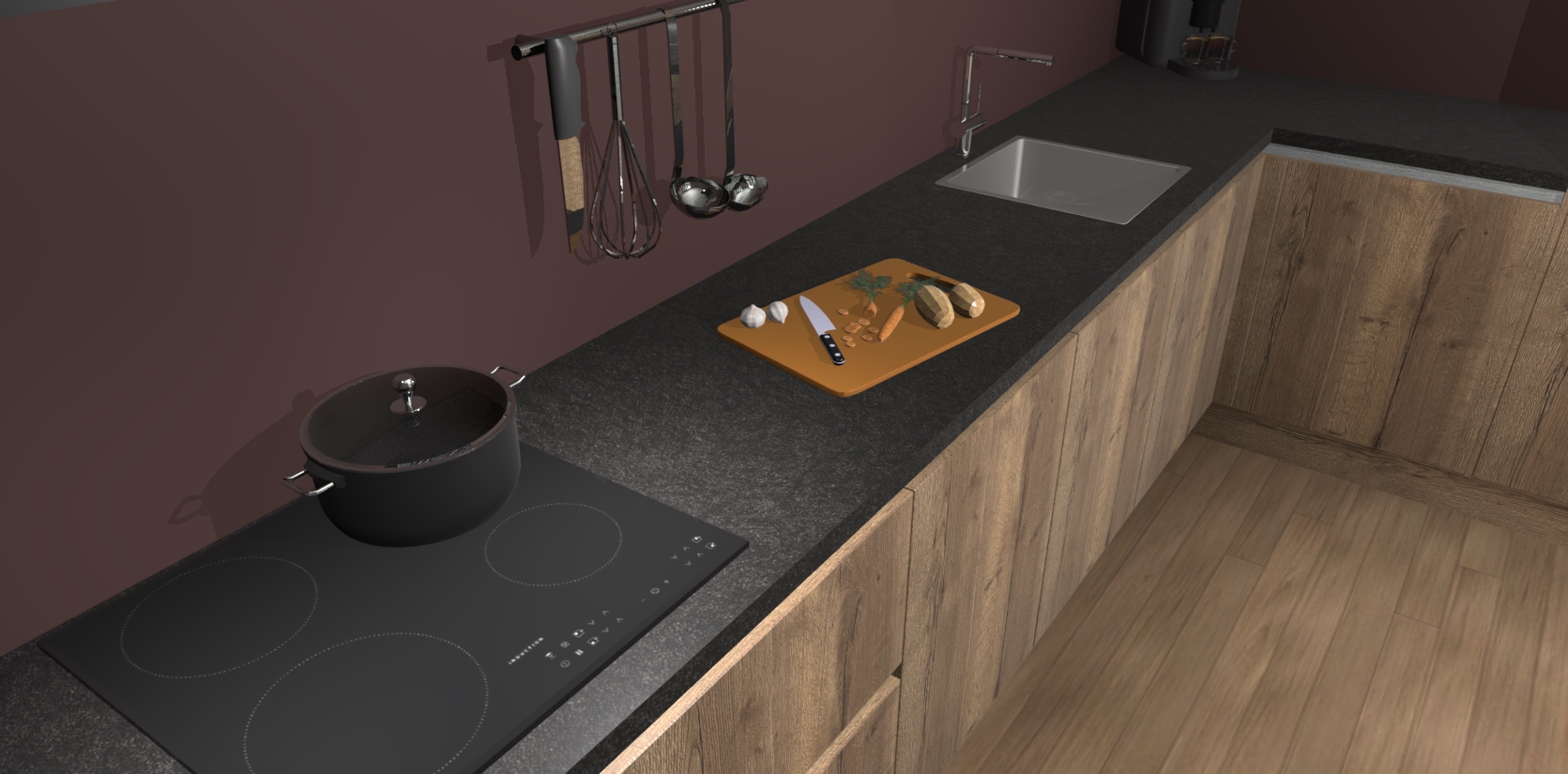 - Uitsparing van kookplaat, spoelbak en kraan dient u zelf te verzorgen.