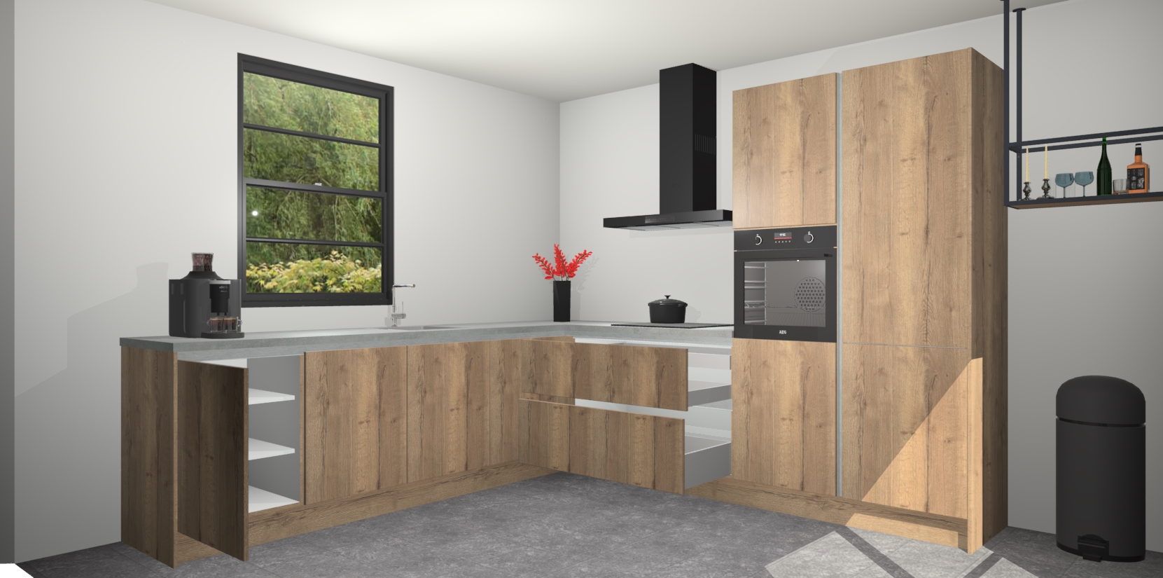 De Chocolade Eiken greeploze keuken Porto heeft 5 ingebouwde apparaten - een oven, inductiekookplaat, afzuigkap, vaatwasser en koelkast - waarmee u in een handomdraai heerlijke gerechten bereidt. Soft-close deuren zorgen voor nog meer functionaliteit en gemak. En dit alles voor een onverslaanbaar vaste prijs. En als u nu bestelt, duurt de levering maar 7 weken! Wat nog ongelooflijker is, is dat onze kasten voor gemonteerd worden geleverd.