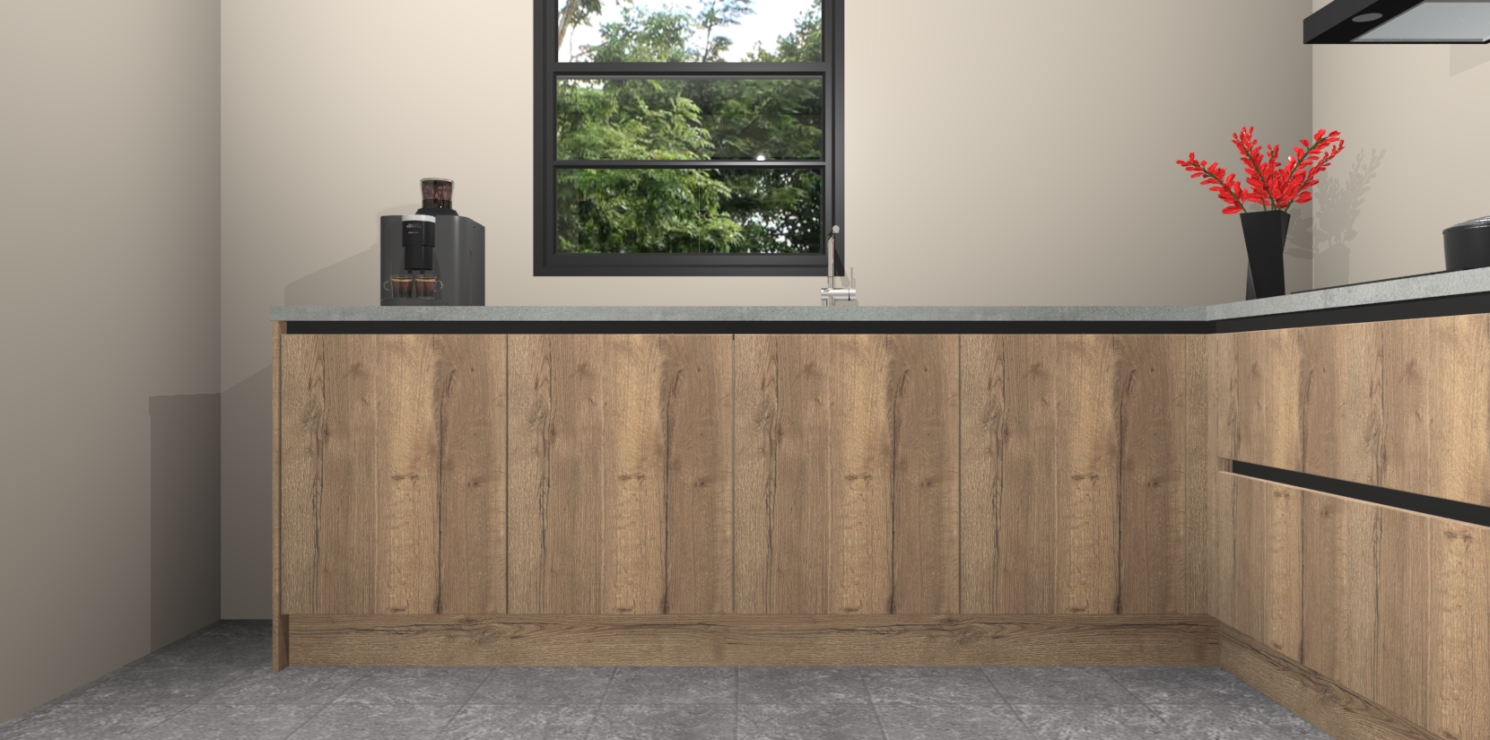 Inclusief plinten, stelpoten en werkblad