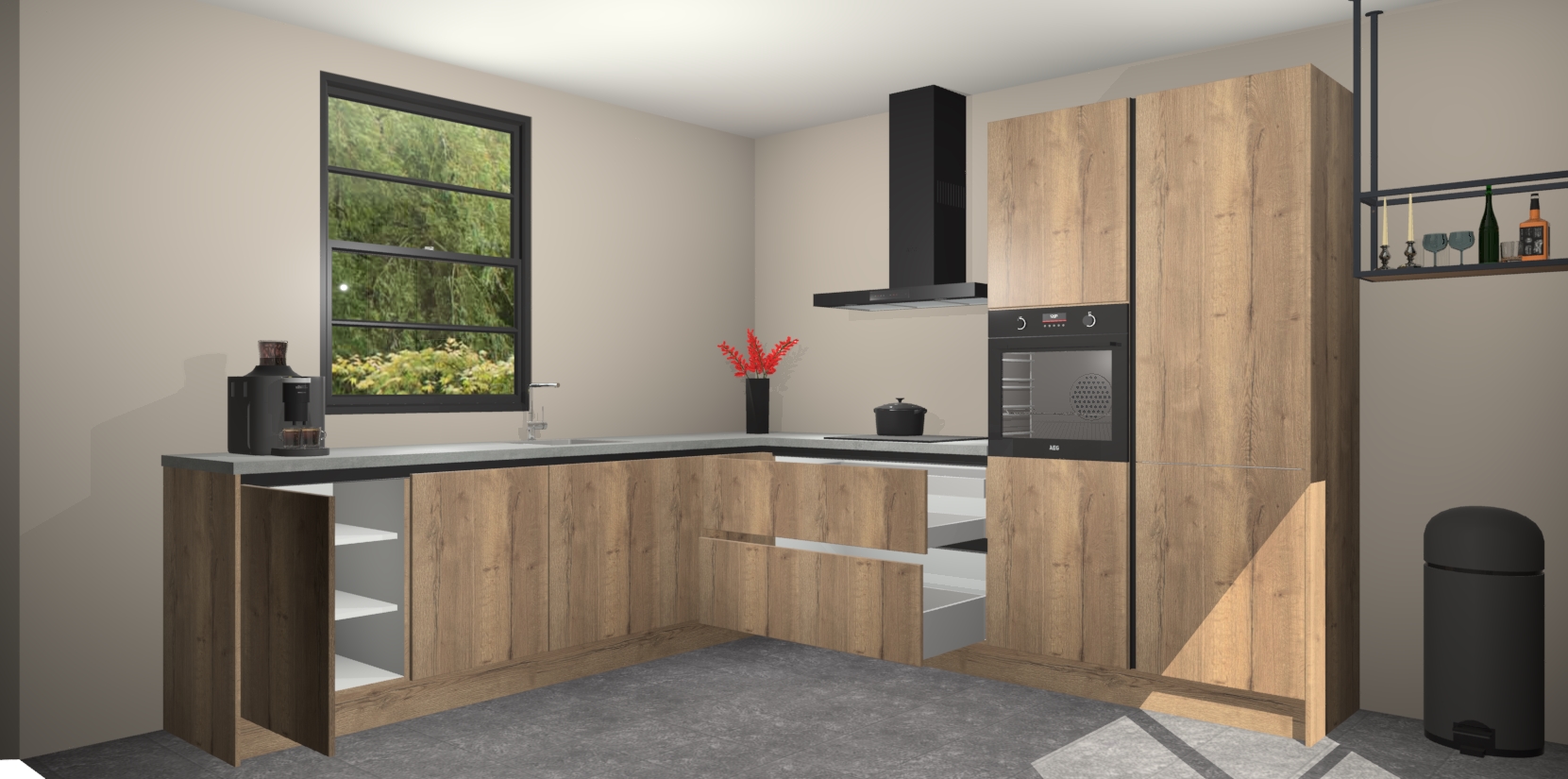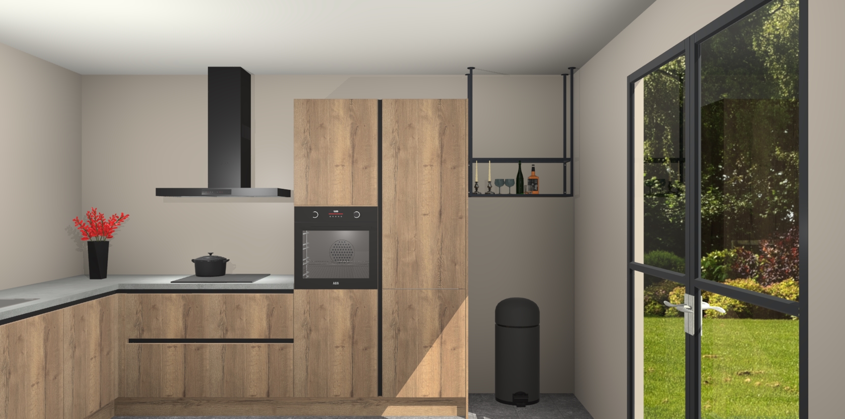 De Chocolade Eiken greeploze keuken Porto heeft 5 ingebouwde apparaten - een oven, inductiekookplaat, afzuigkap, vaatwasser en koelkast - waarmee u in een handomdraai heerlijke gerechten bereidt. Soft-close deuren zorgen voor nog meer functionaliteit en gemak. En dit alles voor een onverslaanbaar vaste prijs. En als u nu bestelt, duurt de levering maar 7 weken! Wat nog ongelooflijker is, is dat onze kasten voor gemonteerd worden geleverd.