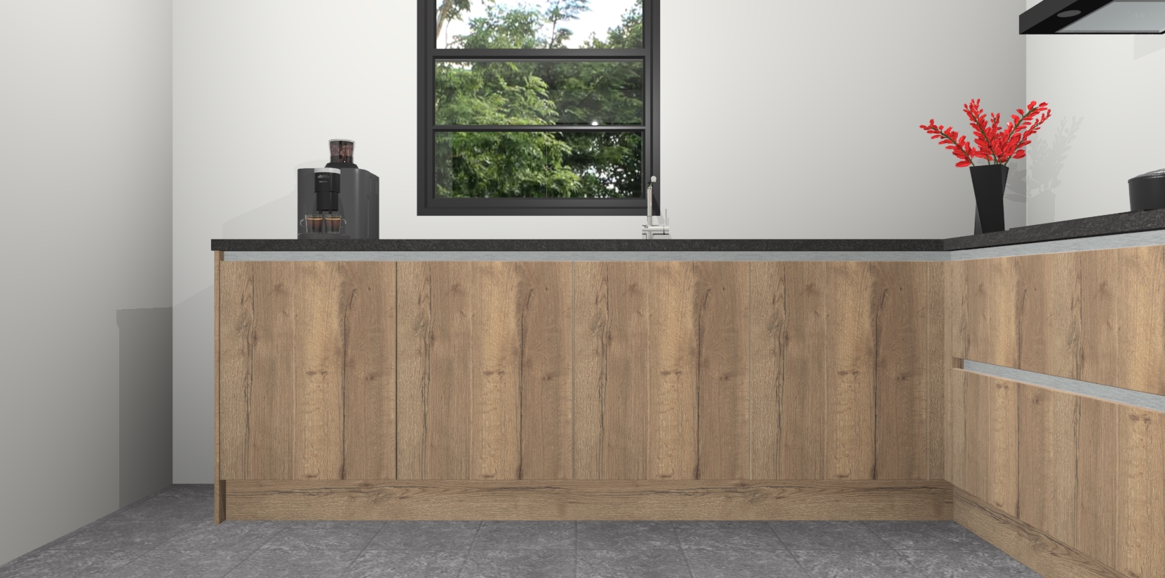 Als u op zoek bent naar stijl in combinatie met optimale efficiëntie, dan is de Chocolade Eiken greeploze keuken Porto de perfecte keuze voor elk modern huis. Plaats vandaag nog uw bestelling en begin met koken in uw nieuwe keuken voor u het weet!