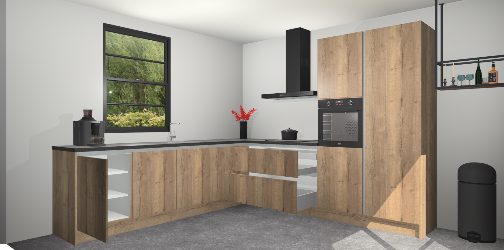 De Chocolade Eiken greeploze keuken Porto heeft 5 ingebouwde apparaten - een oven, inductiekookplaat, afzuigkap, vaatwasser en koelkast - waarmee u in een handomdraai heerlijke gerechten bereidt. Soft-close deuren zorgen voor nog meer functionaliteit en gemak. En dit alles voor een onverslaanbaar vaste prijs. En als u nu bestelt, duurt de levering maar 7 weken! Wat nog ongelooflijker is, is dat onze kasten voor gemonteerd worden geleverd.