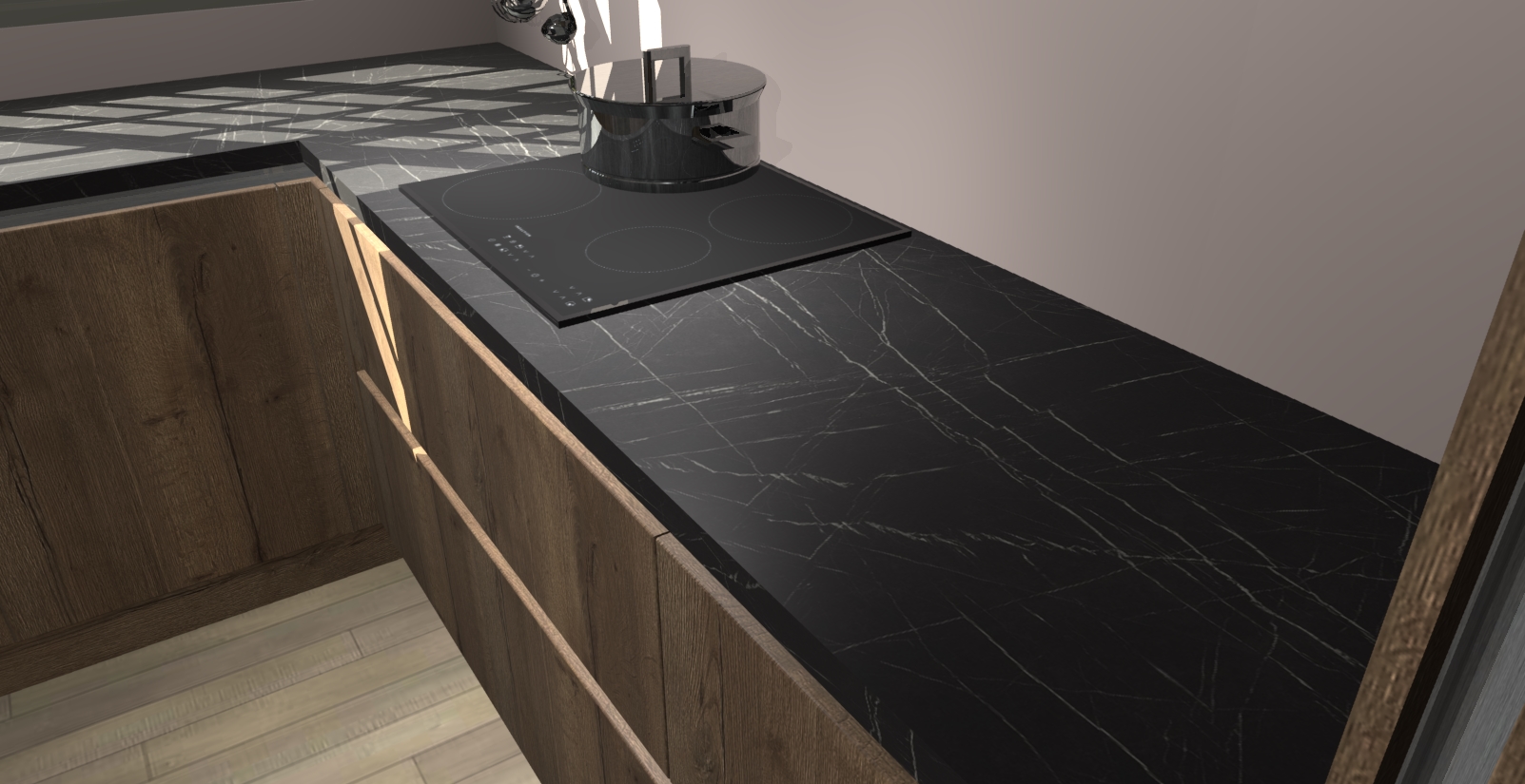 - Bij een hoekwerkblad zijn de hoeken in gevreesd en op maat gemaakt