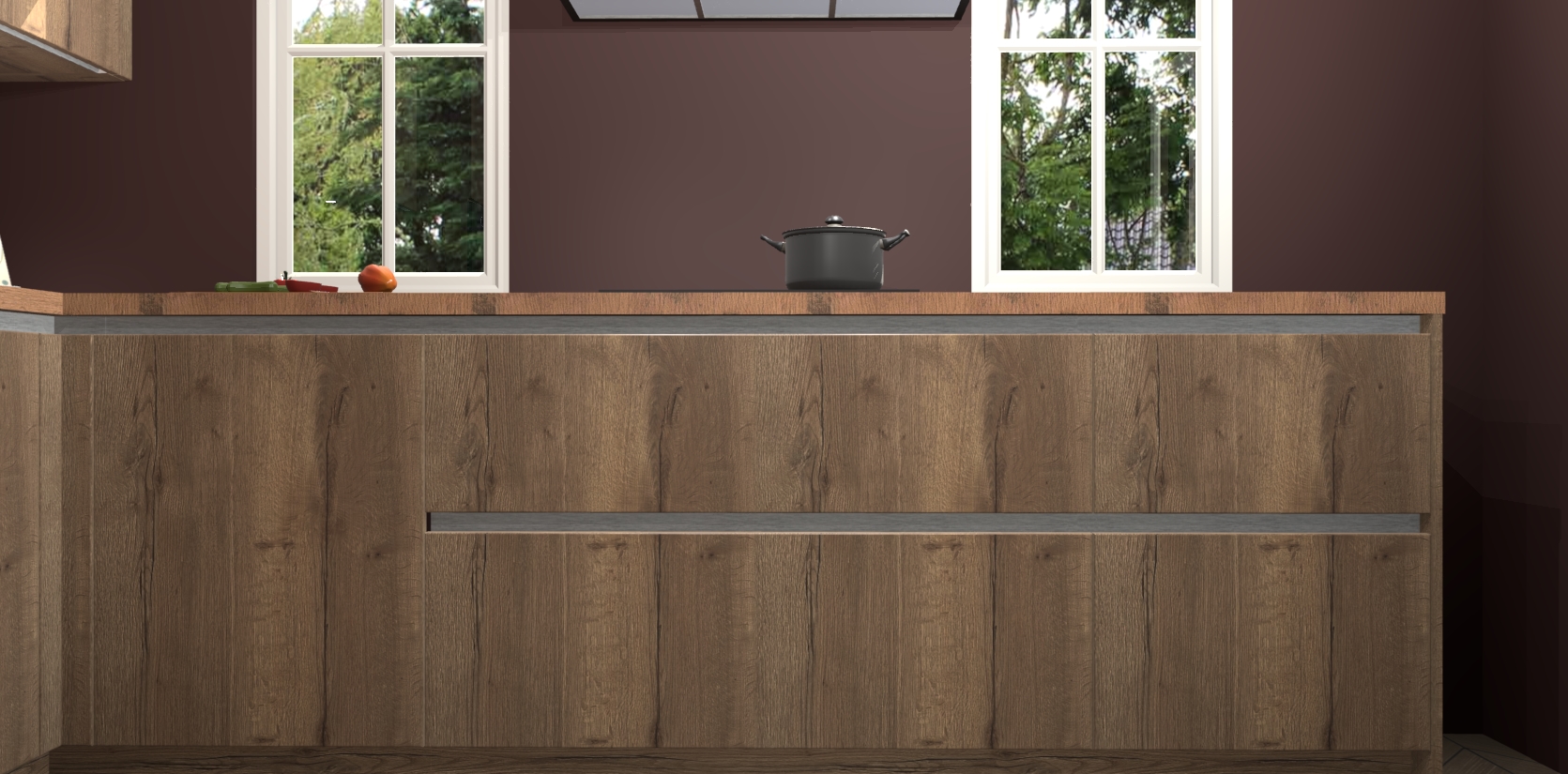 En met onze scherpe prijzen hoeft u niet in te leveren op kwaliteit. Chocolade eiken greeploze keuken Regina is de perfecte combinatie van functioneel en betaalbaar, dus waarom zou u ergens anders zoeken naar de keuken van uw dromen?