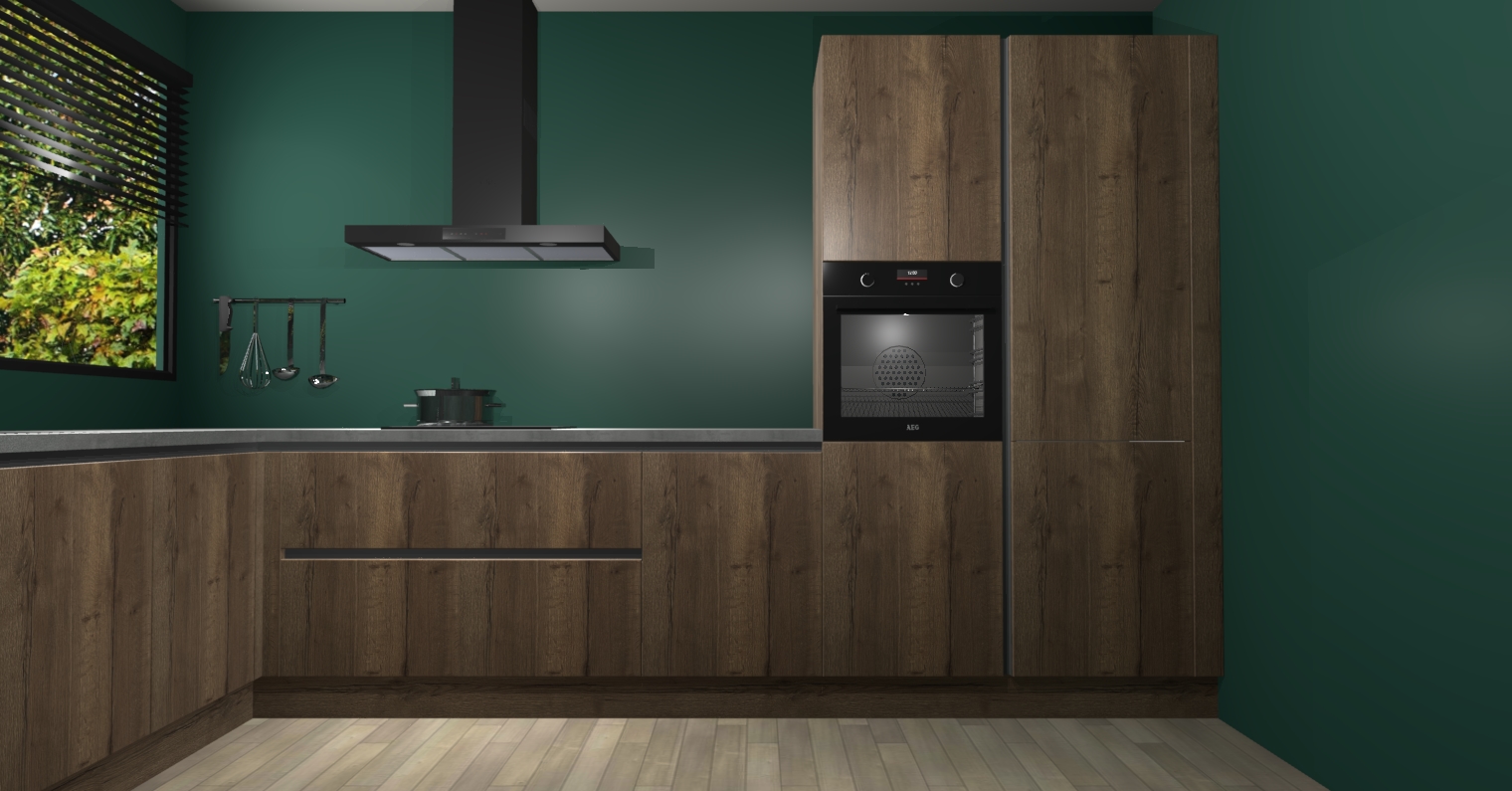 Wij presenteren de revolutie in keukens: de Chocolade Eiken greeploze keuken Rhodos. Met modern design, een tijdloos uiterlijk en kasten die al voor gemonteerd worden geleverd, laat deze stijlvolle keuken uw kookervaring op een hele nieuwe manier transformeren.