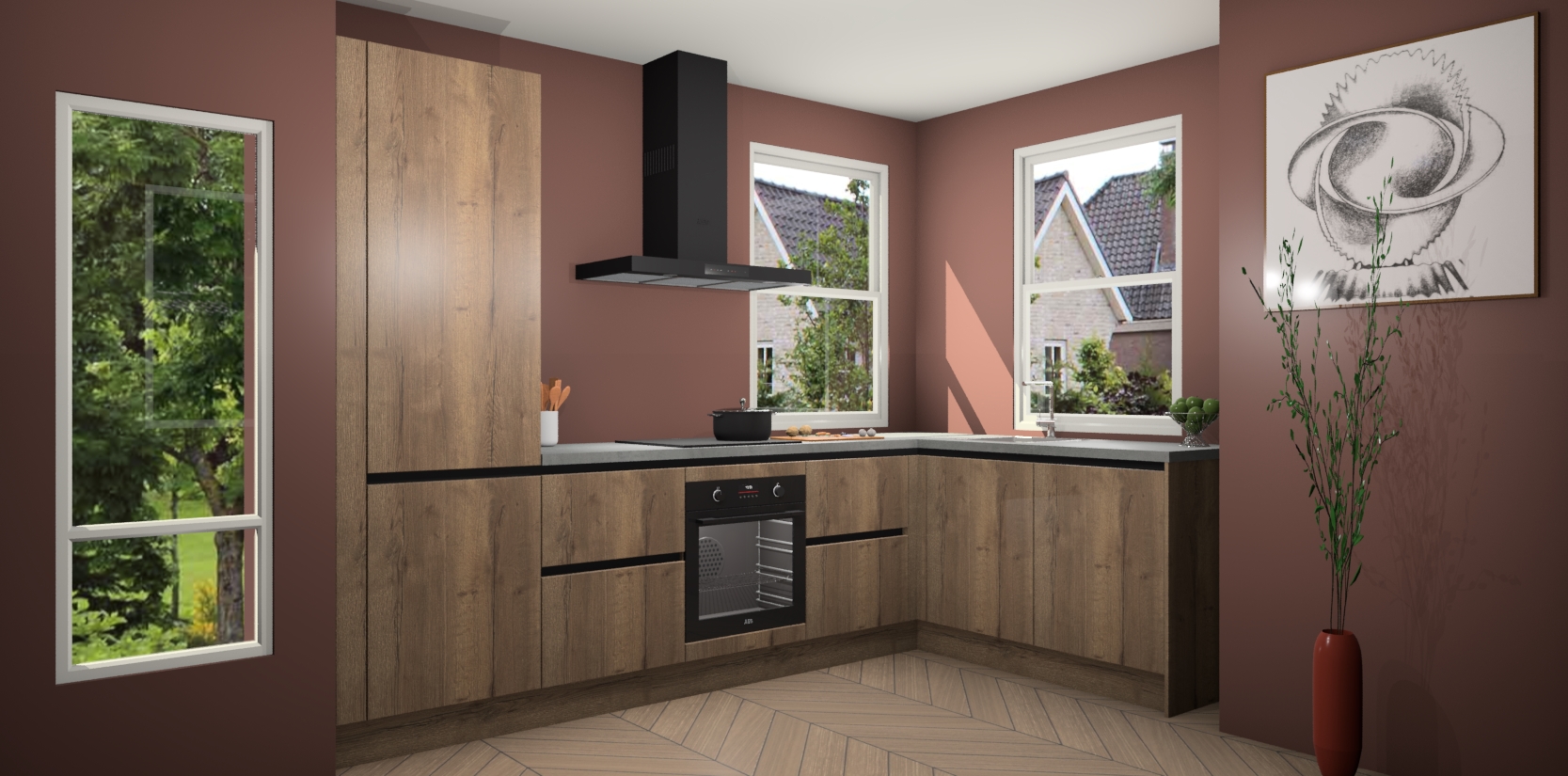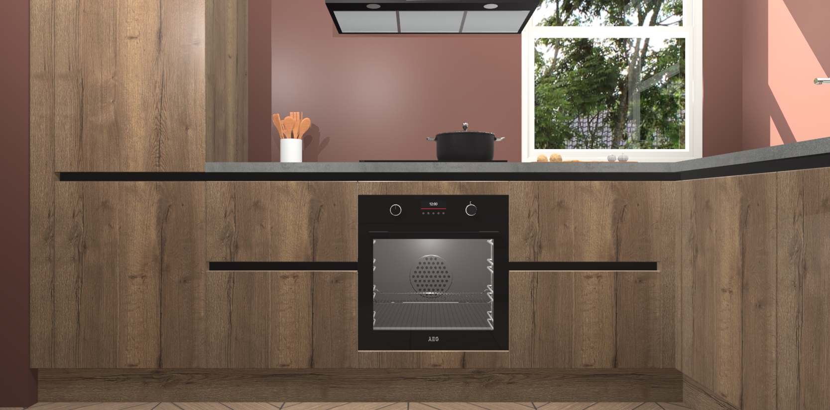 Wat maakt deze keuken zo bijzonder? Ten eerste geeft het houten werkblad uw ruimte een onmiskenbaar klassieke uitstraling. De natuurlijke afwerking roept warmte en elegantie op die nooit uit de mode zullen raken. Bovendien is het gemakkelijk schoon te houden en te onderhouden, zodat je er jarenlang plezier van kunt hebben. Als u op zoek bent naar extra gemak in uw keuken, dan heeft u bij het plaatsen van een bestelling bij ons ook de optie om uw toestellen te upgraden naar AEG-modellen - zo haalt u moderne innovatie van topmerken in apparatentechnologie rechtstreeks in huis.