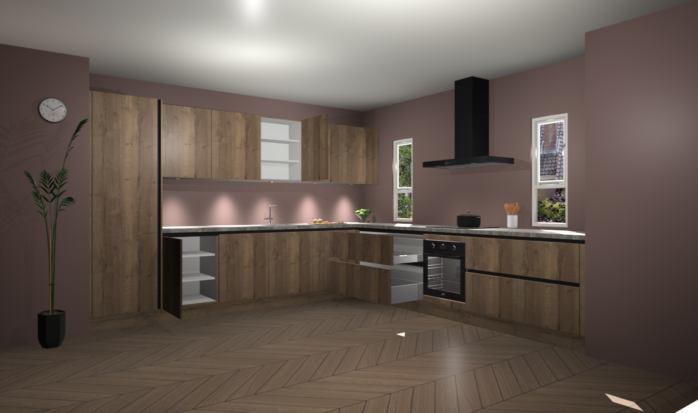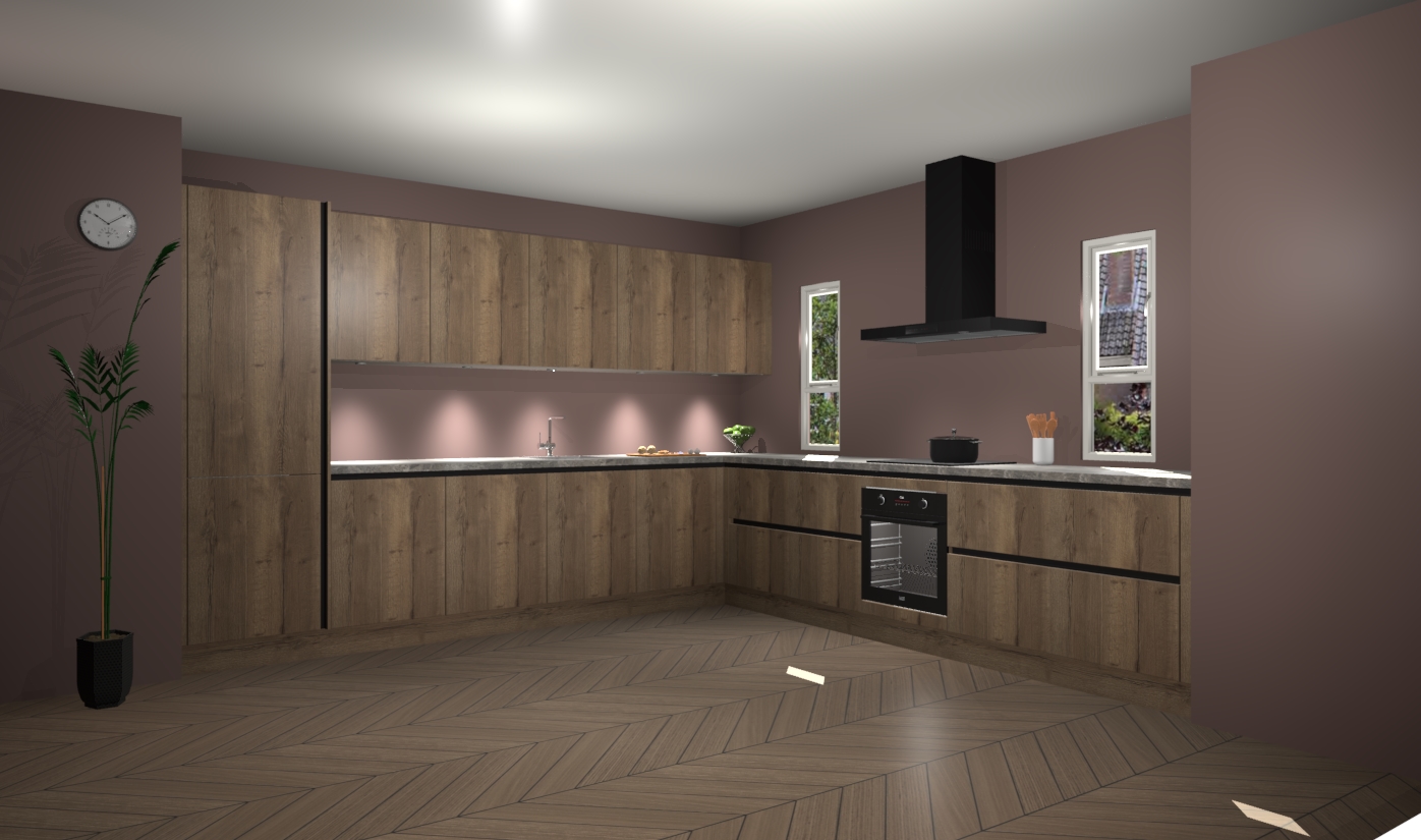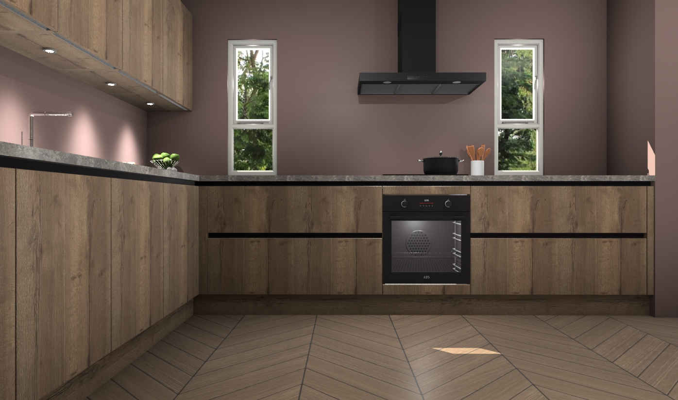 De chocolade eiken greeploze keuken is een ideale hoekkeuken en heeft alle functies en apparatuur die u maar nodig kunt hebben. Bij de bestelling krijgt u een oven, inductiekookplaat, afzuigkap, vaatwasser en koelkast - deze kunnen desgewenst eenvoudig worden uitgebreid naar AEG na bestellen. Elke kast wordt ook voor gemonteerd geleverd met soft close deuren die jarenlang gebruik beloven. Stelt u zich voor dat u geen gedoe heeft met vervelende montage - vanaf het moment dat u uw bestelling plaats, duurt het slechts 7 weken voor het bij u thuis geleverd wordt.
