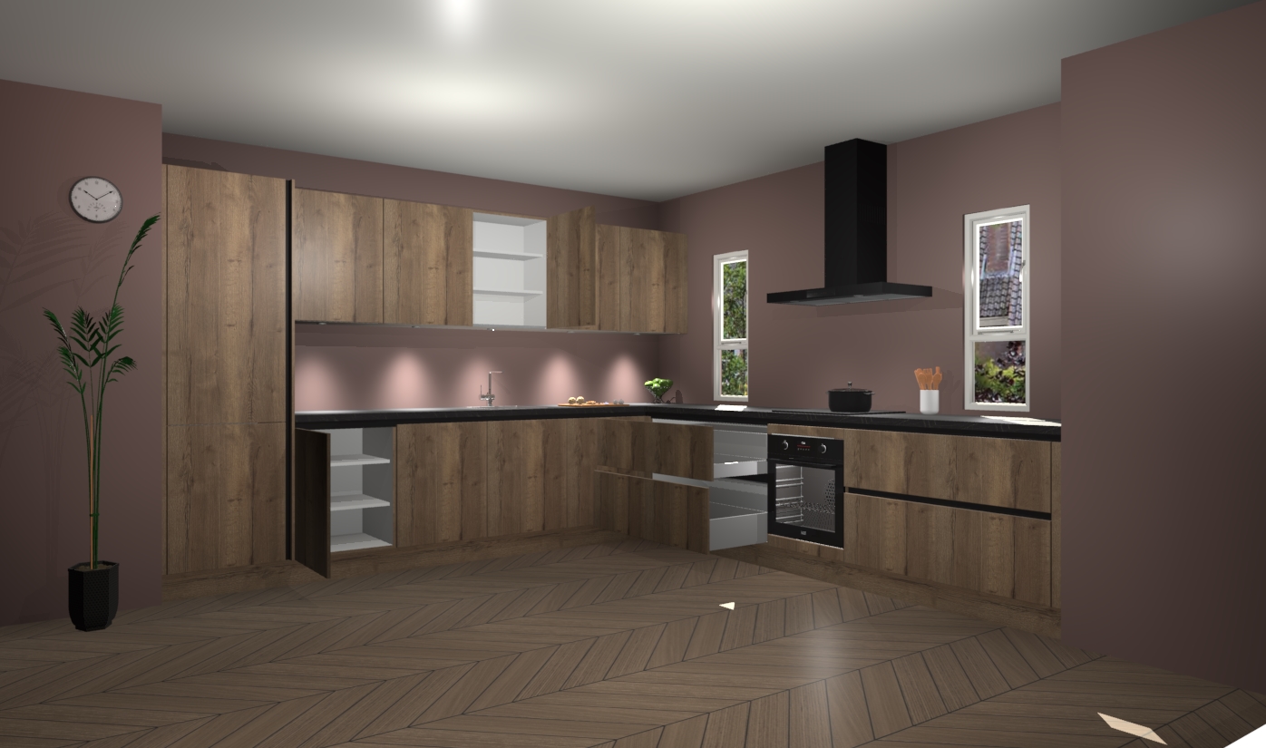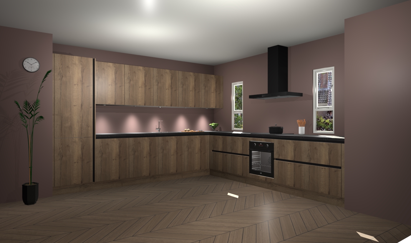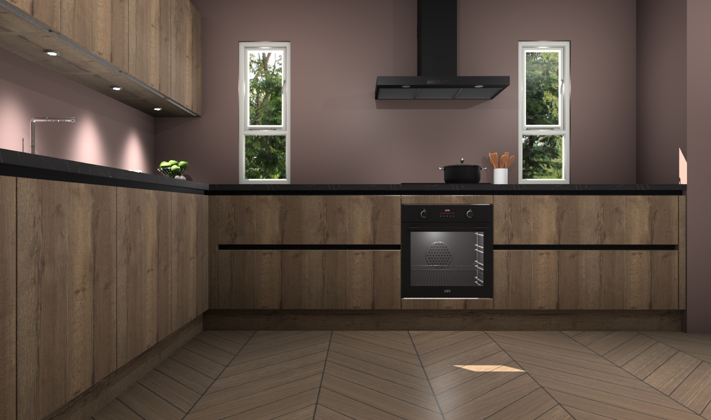 De chocolade eiken greeploze keuken is een ideale hoekkeuken en heeft alle functies en apparatuur die u maar nodig kunt hebben. Bij de bestelling krijgt u een oven, inductiekookplaat, afzuigkap, vaatwasser en koelkast - deze kunnen desgewenst eenvoudig worden uitgebreid naar AEG na bestellen. Elke kast wordt ook voor gemonteerd geleverd met soft close deuren die jarenlang gebruik beloven. Stelt u zich voor dat u geen gedoe heeft met vervelende montage - vanaf het moment dat u uw bestelling plaats, duurt het slechts 7 weken voor het bij u thuis geleverd wordt.