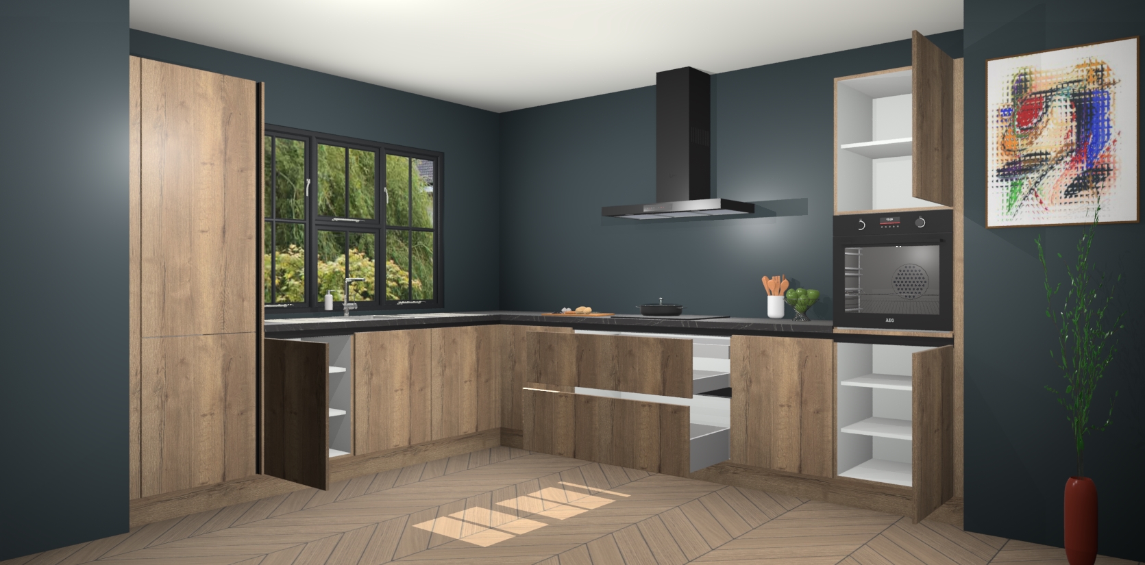 In deze box zijn alle kleuren verzameld van de deuren en werkbladen. Vraag de gratis kleurenbox aan en kijk thuis rustig verder!