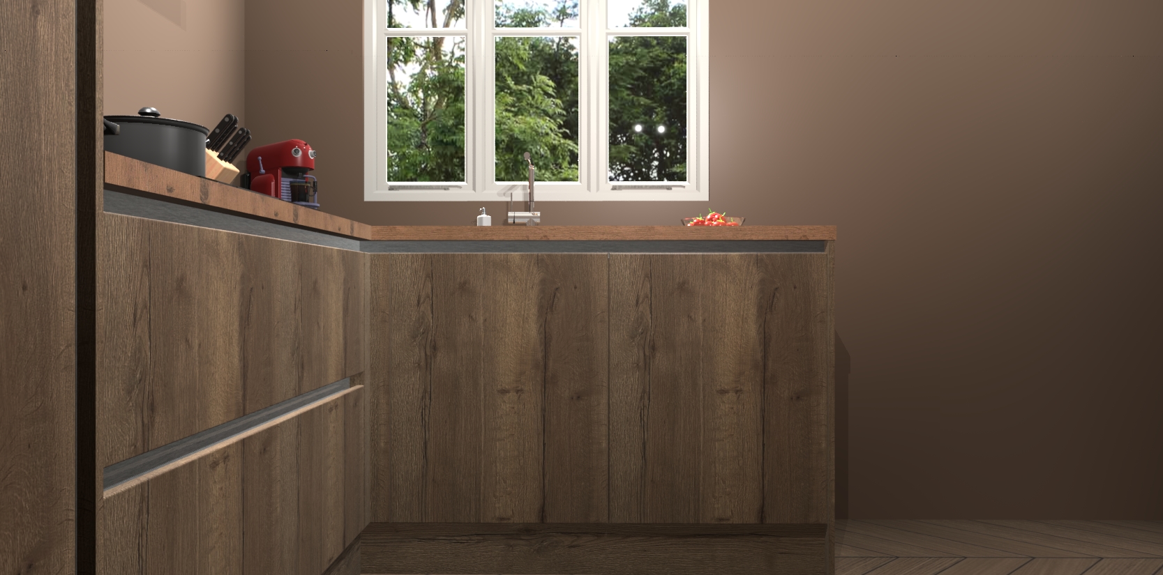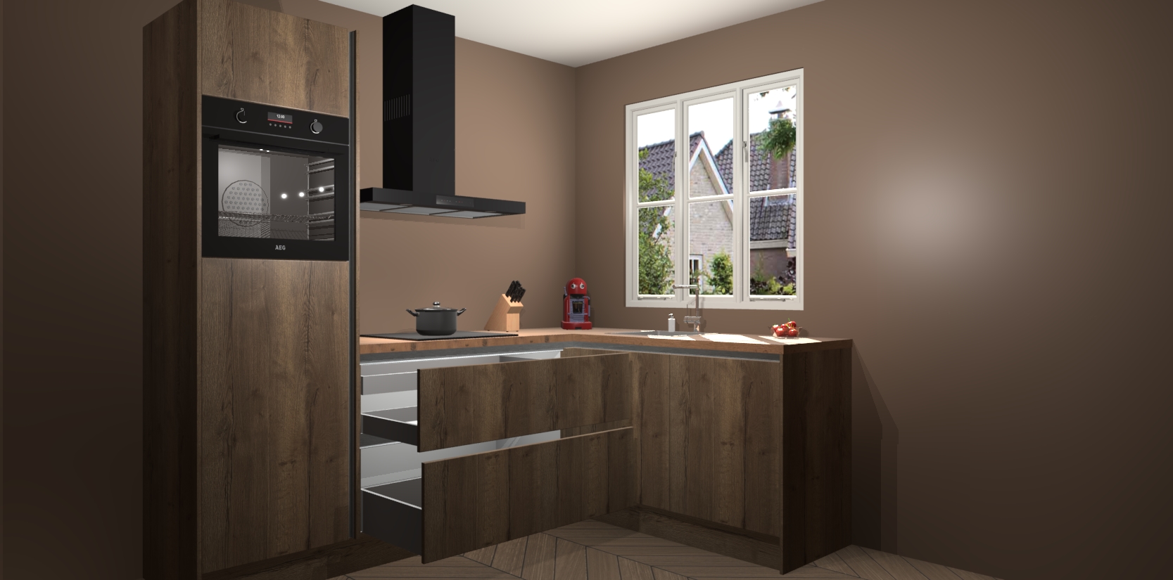 Dit model biedt u voldoende opbergruimte en vijf ingebouwde apparaten: een oven, inductiekookplaat, afzuigkap, vaatwasser en koelkast. Deze apparaten kunnen gemakkelijk worden geüpgrade naar AEG nadat u besteld heeft. De verschillende laden en kastjes bevatten softclose-deuren waardoor ze gezellig dichtvallen met een geruststellend helemaal geruisloos geluid. En dat is nog niet alles! We garanderen ook dat de prijs altijd laag blijft - dus haal nu uw Chocolade Eiken greeploze keuken Victoria terwijl het kan.