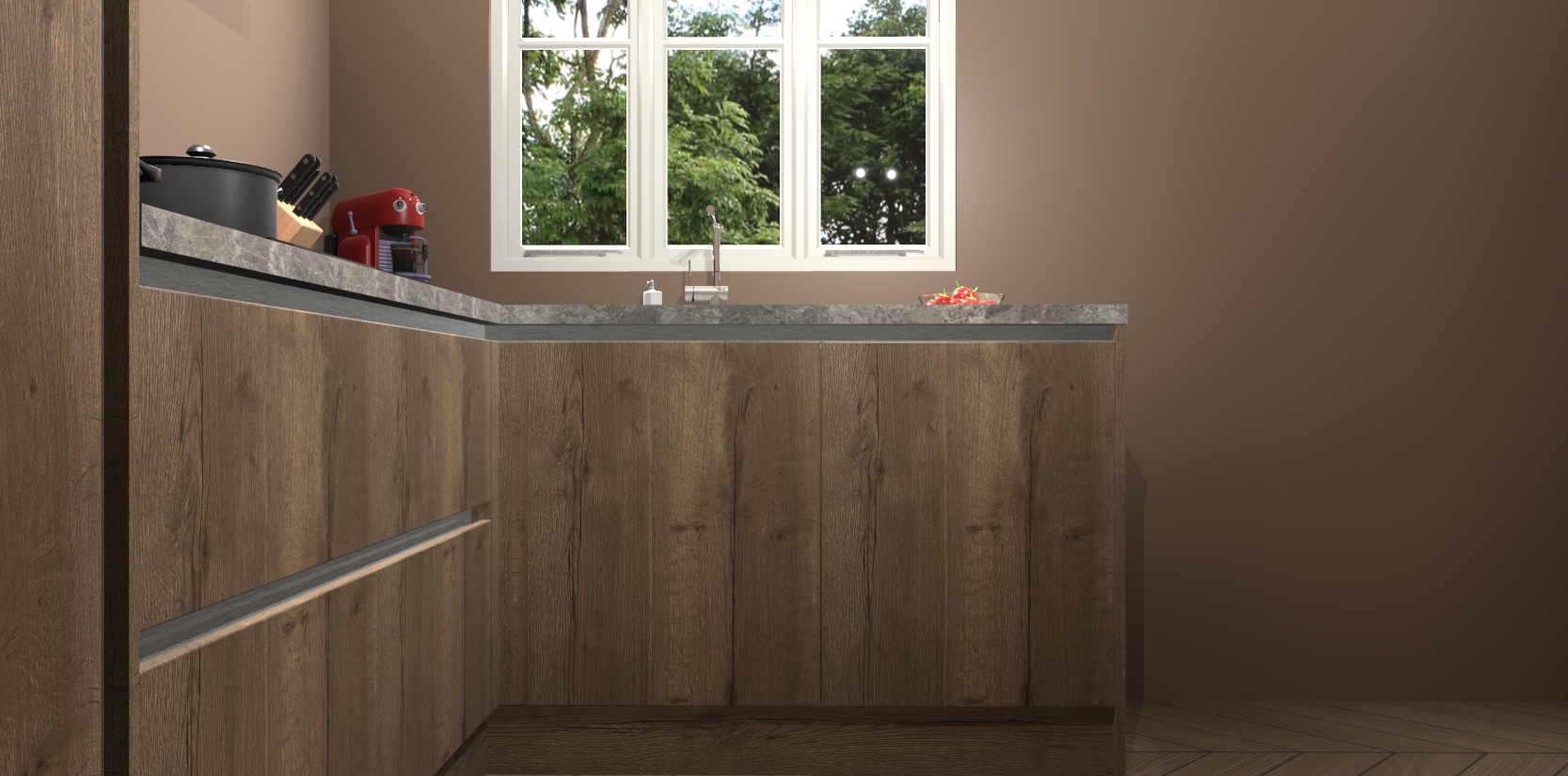 Bestellen was nog nooit zo makkelijk en we leveren met slechts 7 weken; zodra de keuken arriveert staan de kasten voor gemonteerd klaar om er alles aan te doen dat u hem gemakkelijk zelf kunt installeren! Eén ding is zeker: met de Chocolade Eiken greeploze keuken Victoria slaagt u erin modischer, modernere keukens uit te rusten die tientallen jaren meegaan! Haal snel uw Chocolade Eiken greeploze keuken Victoria - of u nu net begint of al 'levenservaring' hebt in de keukendroomloopbaan - want dit topmodel van onze collectie wilt u absoluut niet missen.