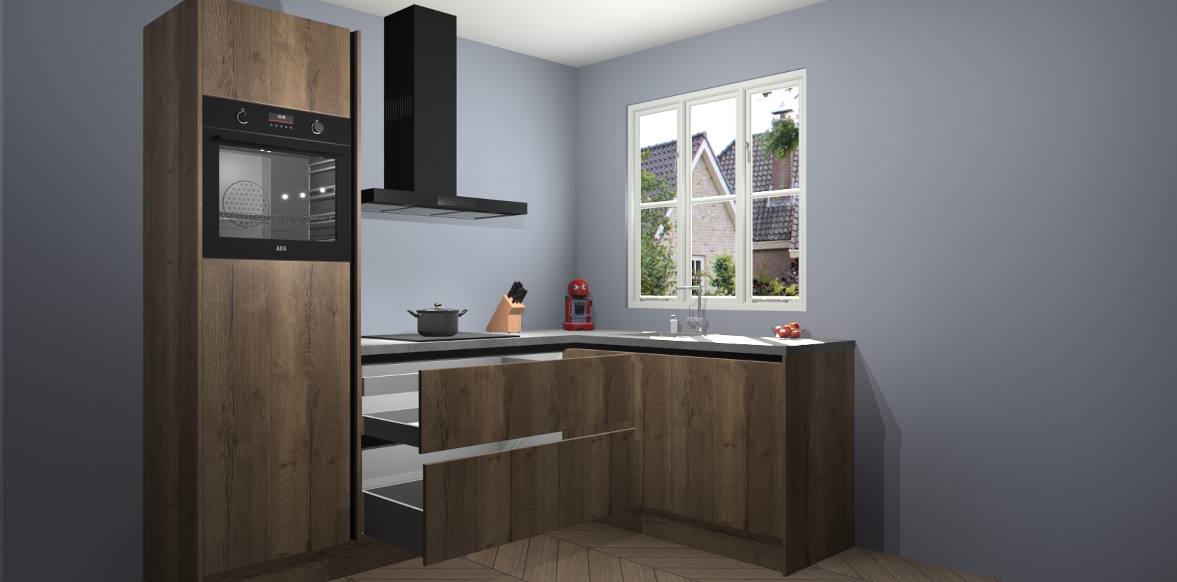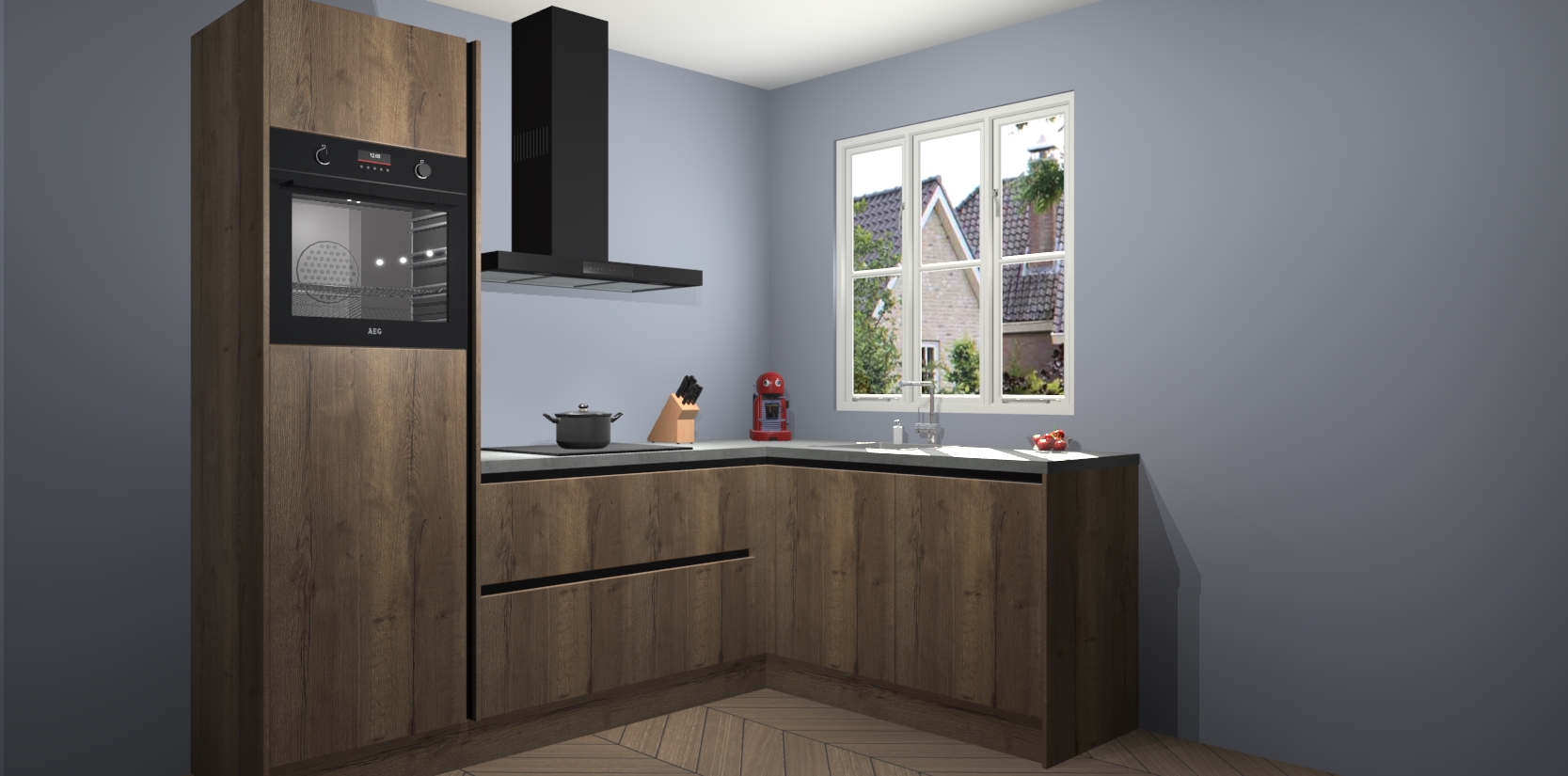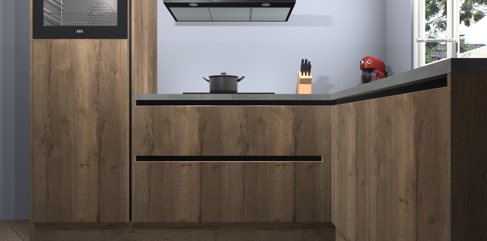 Dit model biedt u voldoende opbergruimte en vijf ingebouwde apparaten: een oven, inductiekookplaat, afzuigkap, vaatwasser en koelkast. Deze apparaten kunnen gemakkelijk worden geüpgrade naar AEG nadat u besteld heeft. De verschillende laden en kastjes bevatten softclose-deuren waardoor ze gezellig dichtvallen met een geruststellend helemaal geruisloos geluid. En dat is nog niet alles! We garanderen ook dat de prijs altijd laag blijft - dus haal nu uw Chocolade Eiken greeploze keuken Victoria terwijl het kan.