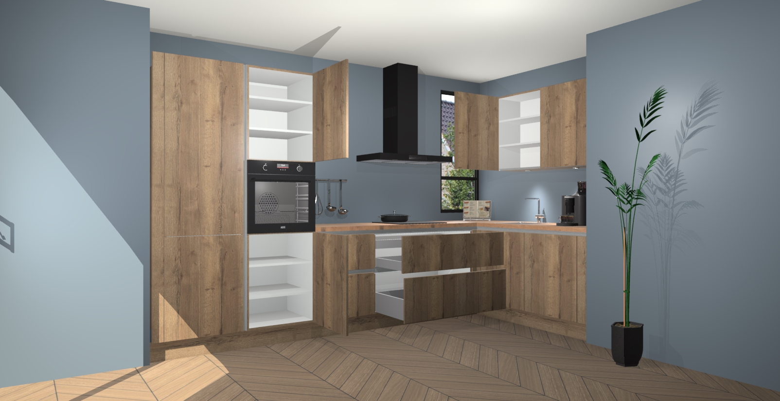 Welkom in uw nieuwe moderne keuken! Laat ons u voorstellen aan de Chocolade Eiken greeploze keuken Vlaanderen . Deze prachtige hoekkeuken straalt exclusiviteit en luxe uit als geen ander. Het strakke design, de tijdloze kleuren en het greeploze model maken van deze keuken een moderne klassieker. En met voldoende opbergruimte heeft deze keuken echt voor ieder wat wils.