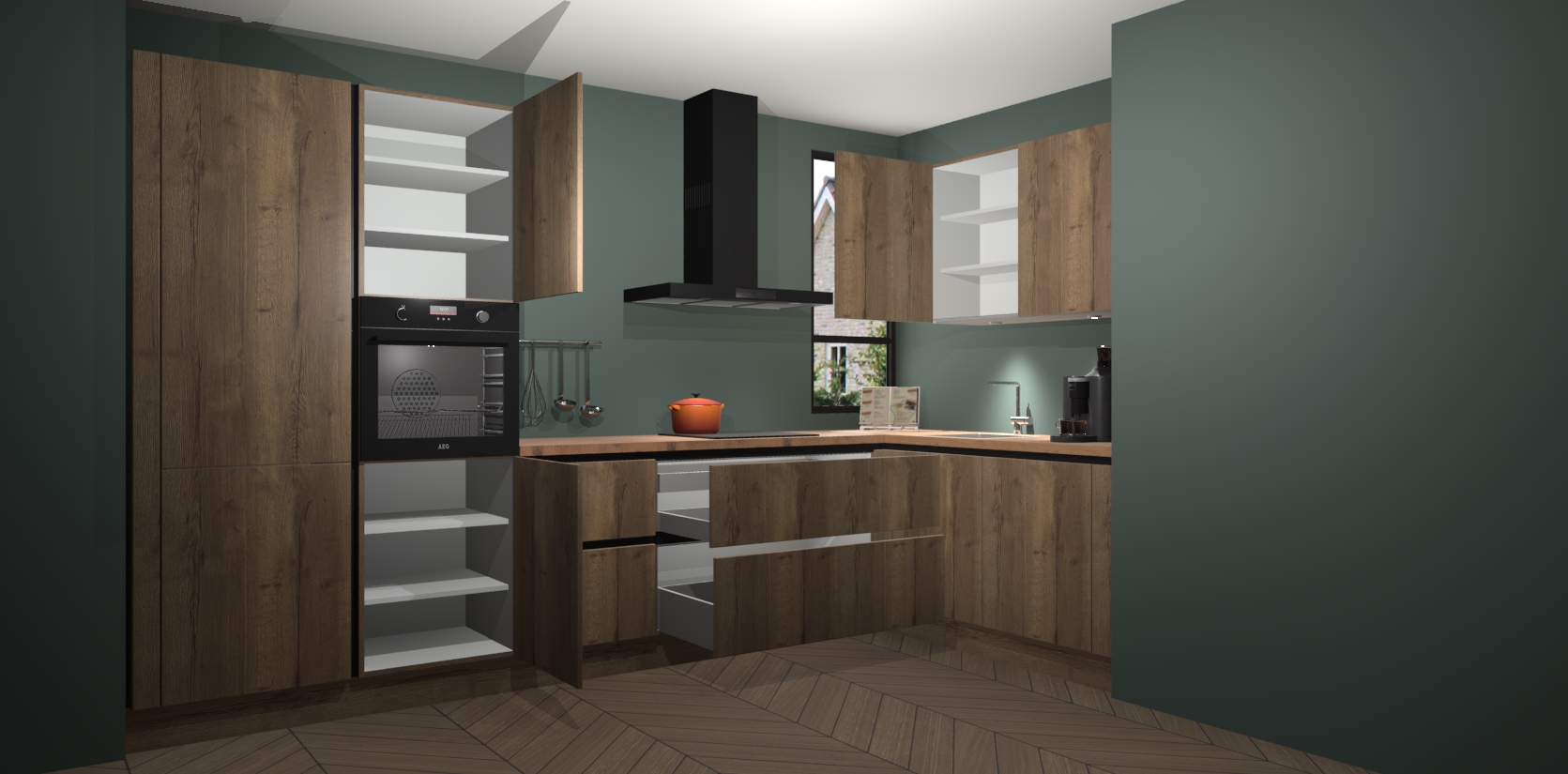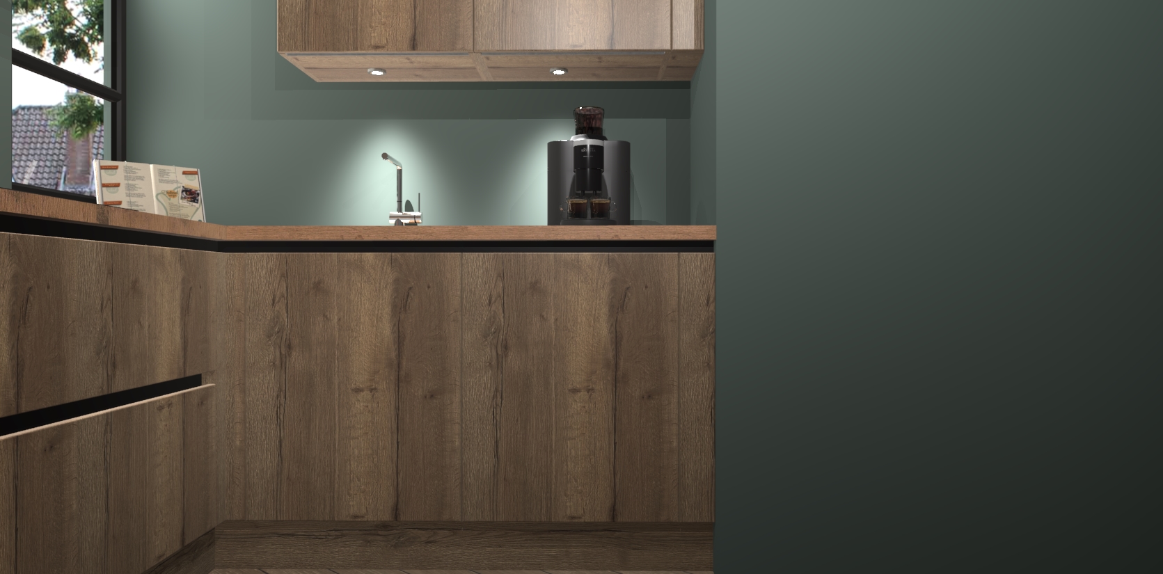 Welkom in uw nieuwe moderne keuken! Laat ons u voorstellen aan de Chocolade Eiken greeploze keuken Vlaanderen . Deze prachtige hoekkeuken straalt exclusiviteit en luxe uit als geen ander. Het strakke design, de tijdloze kleuren en het greeploze model maken van deze keuken een moderne klassieker. En met voldoende opbergruimte heeft deze keuken echt voor ieder wat wils.