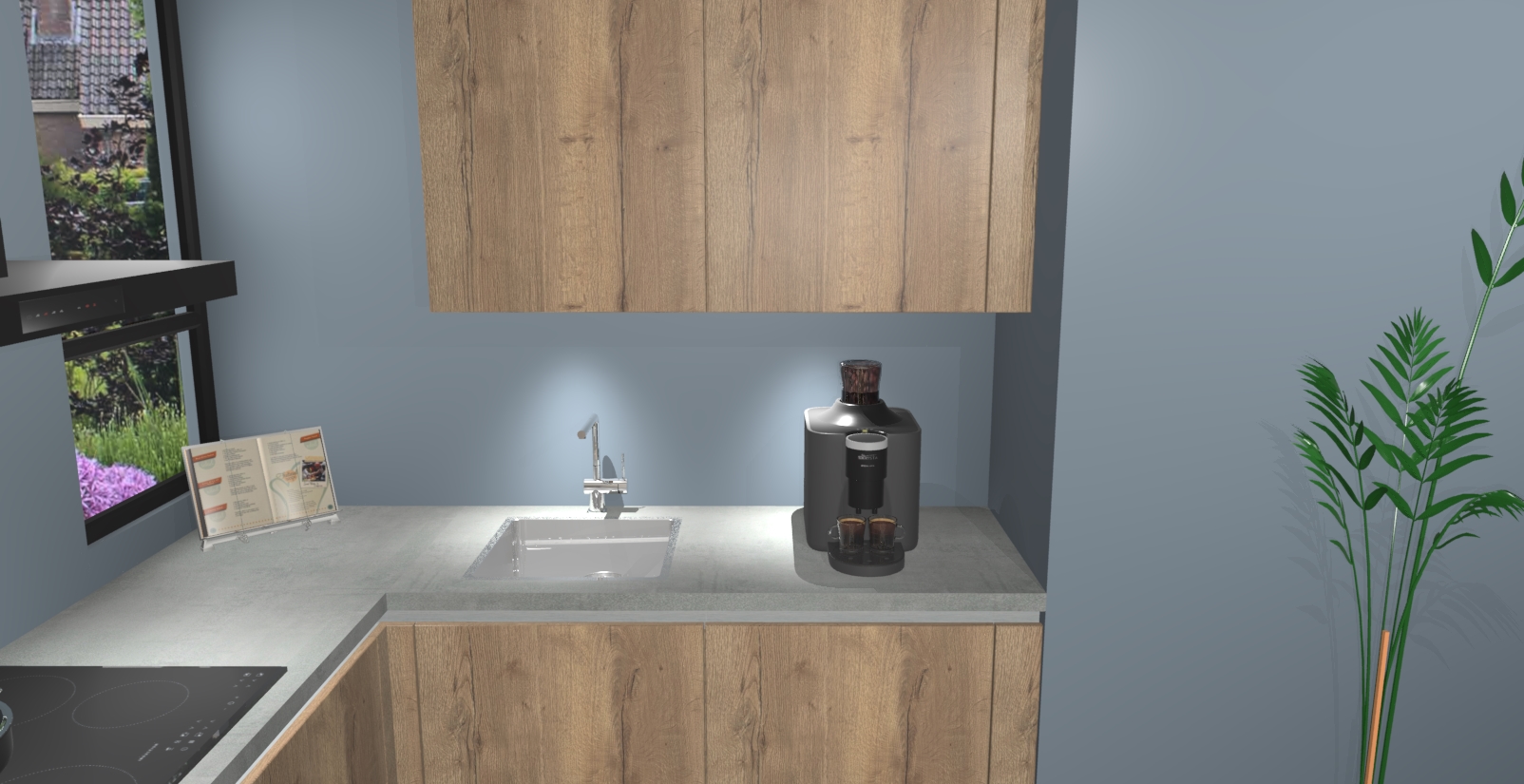 - De spoelbak is nog niet in gevreesd. Dit dient tijdens het werk gedaan te worden