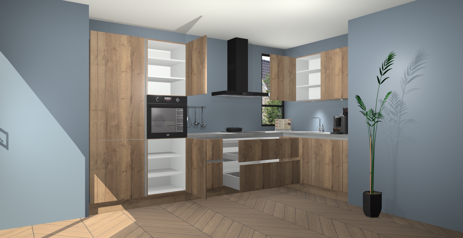 Welkom in uw nieuwe moderne keuken! Laat ons u voorstellen aan de Chocolade Eiken greeploze keuken Vlaanderen . Deze prachtige hoekkeuken straalt exclusiviteit en luxe uit als geen ander. Het strakke design, de tijdloze kleuren en het greeploze model maken van deze keuken een moderne klassieker. En met voldoende opbergruimte heeft deze keuken echt voor ieder wat wils.