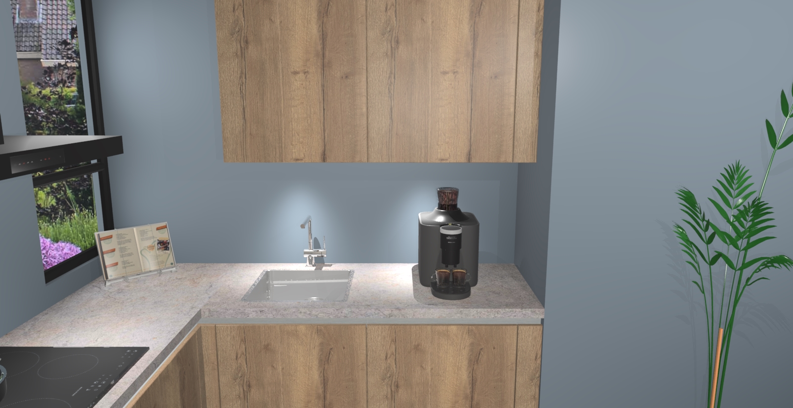 - De spoelbak is nog niet in gevreesd. Dit dient tijdens het werk gedaan te worden