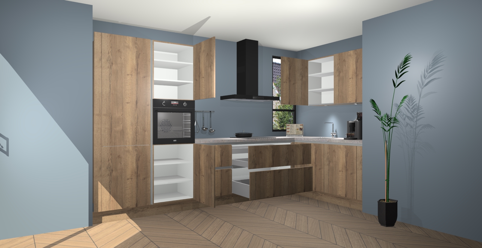 Welkom in uw nieuwe moderne keuken! Laat ons u voorstellen aan de Chocolade Eiken greeploze keuken Vlaanderen . Deze prachtige hoekkeuken straalt exclusiviteit en luxe uit als geen ander. Het strakke design, de tijdloze kleuren en het greeploze model maken van deze keuken een moderne klassieker. En met voldoende opbergruimte heeft deze keuken echt voor ieder wat wils.