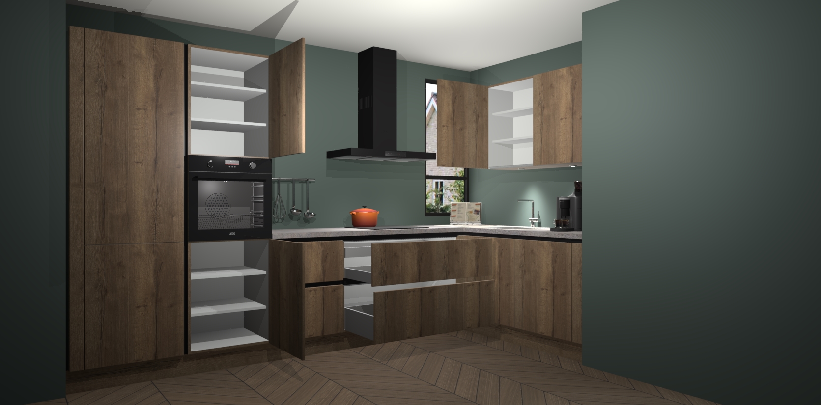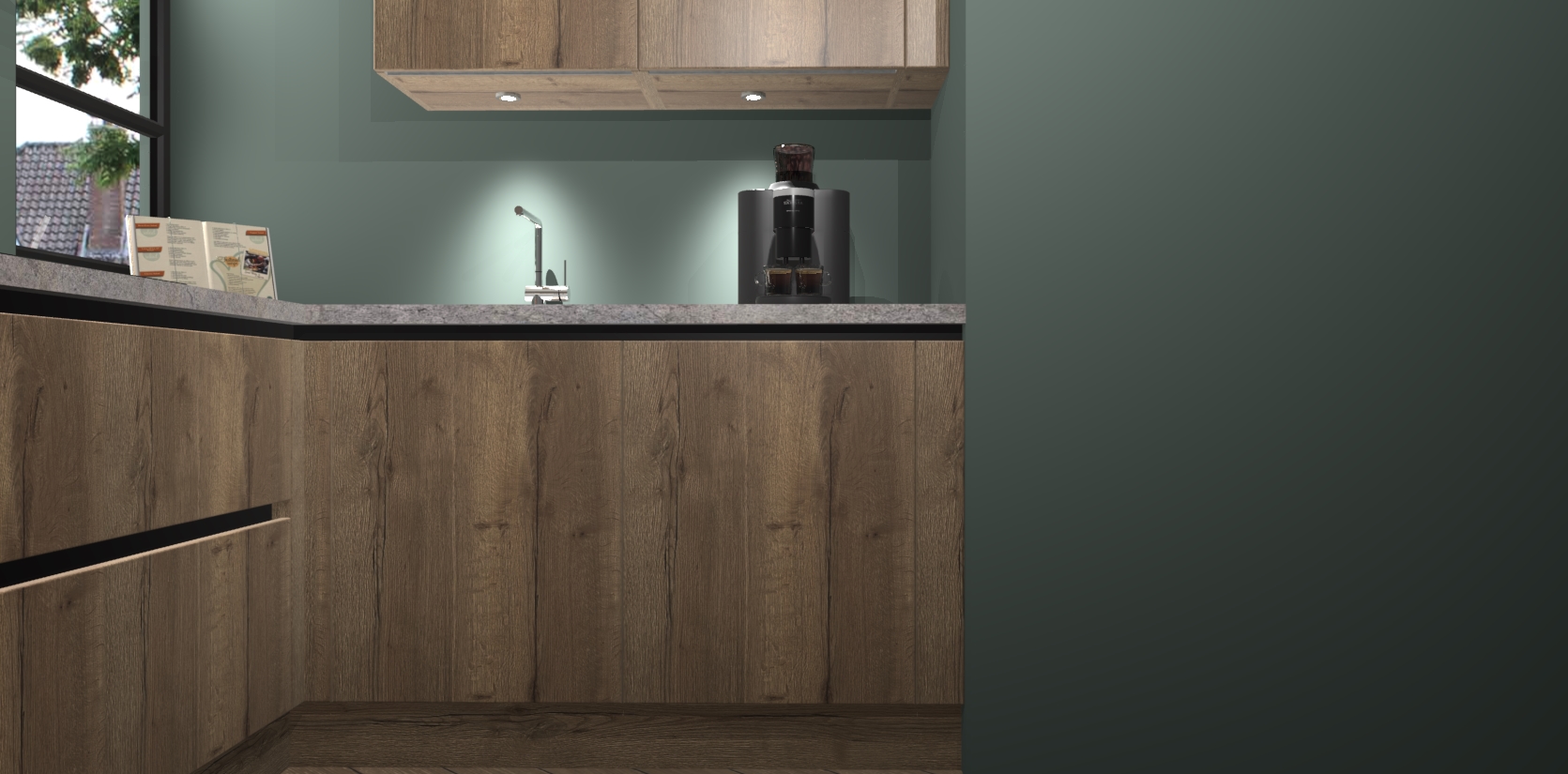 Welkom in uw nieuwe moderne keuken! Laat ons u voorstellen aan de Chocolade Eiken greeploze keuken Vlaanderen . Deze prachtige hoekkeuken straalt exclusiviteit en luxe uit als geen ander. Het strakke design, de tijdloze kleuren en het greeploze model maken van deze keuken een moderne klassieker. En met voldoende opbergruimte heeft deze keuken echt voor ieder wat wils.
